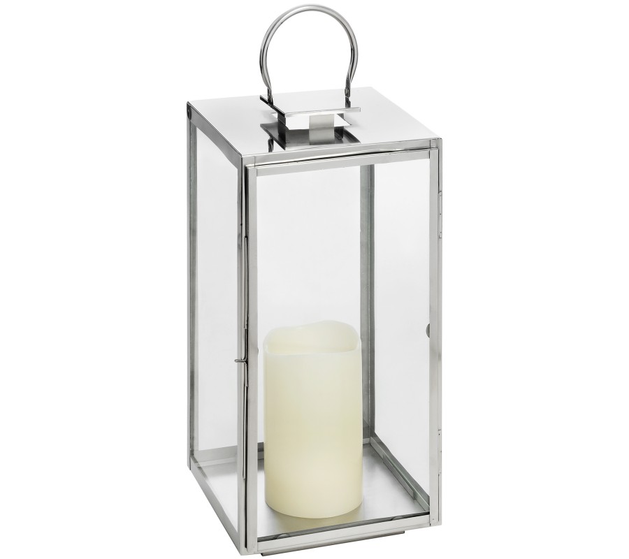 Jednoduchý strieborný lampáš na veľkú sviecu sa svojím univerzálnym dizajnom hodí do akéhokoľvek interiéru či von do exteriéru.