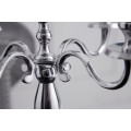 Chrómový lesk povrchu dokonale odráža svetlo a vytvára v interiéri dojem luxusu a noblesy. Vďaka svojmu nadčasovému dizajnu sa svietnik hodí nielen do klasicky zariadených interiérov, ale aj do moderných či eklektických priestorov, kde vytvára pôsobivý kontrast.