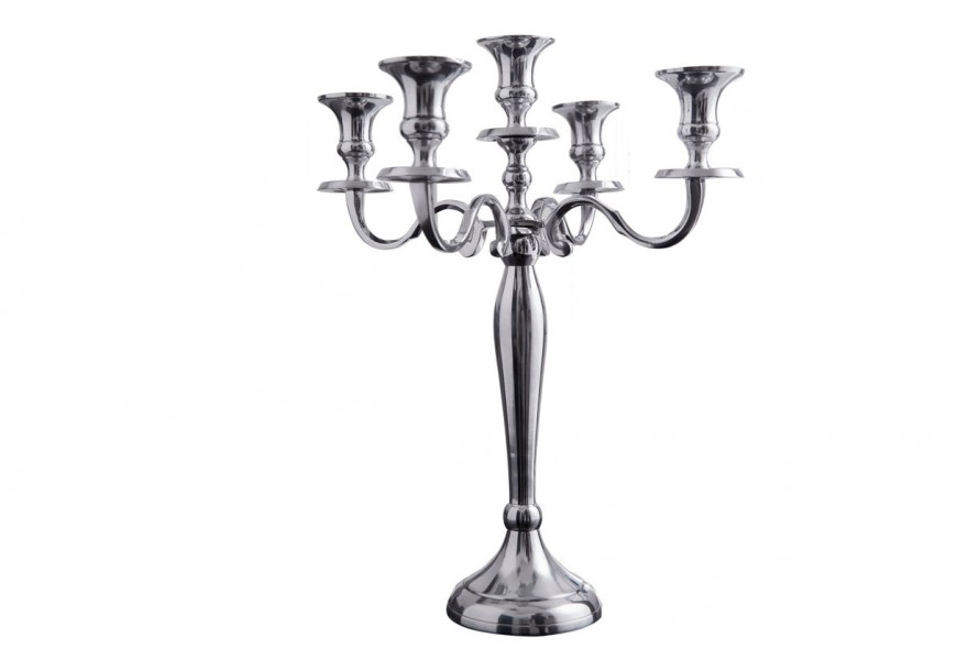 Štýlový zámocký strieborný svietnik Modern Barock s piatimi držiakmi na sviečky s lesklým povrchom 40 cm