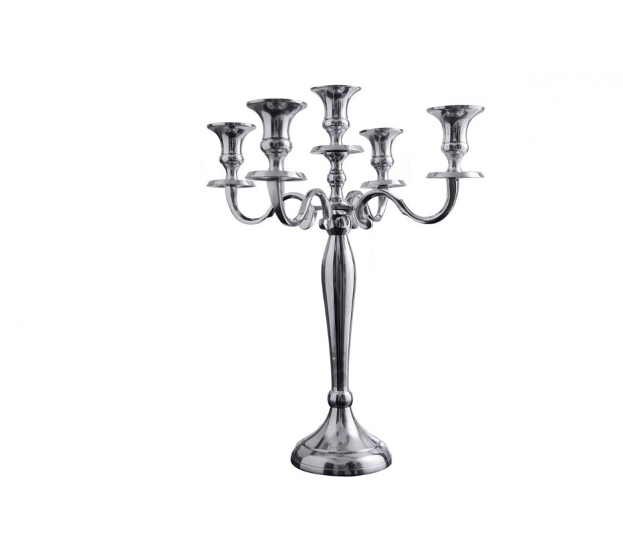 Päť ramien svietnika sa ladne vynára z tela a smeruje oblým pohybom nahor. Každé rameno nesie držiak na sviečku s jemne rozšíreným okrajom, ktorý nadväzuje na celkový plynulý, oblý dizajn bez ostrých prechodov. Výsledný vzhľad pôsobí jemne, harmonicky a ušľachtilo, čo podčiarkuje glamour charakter produktu.