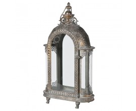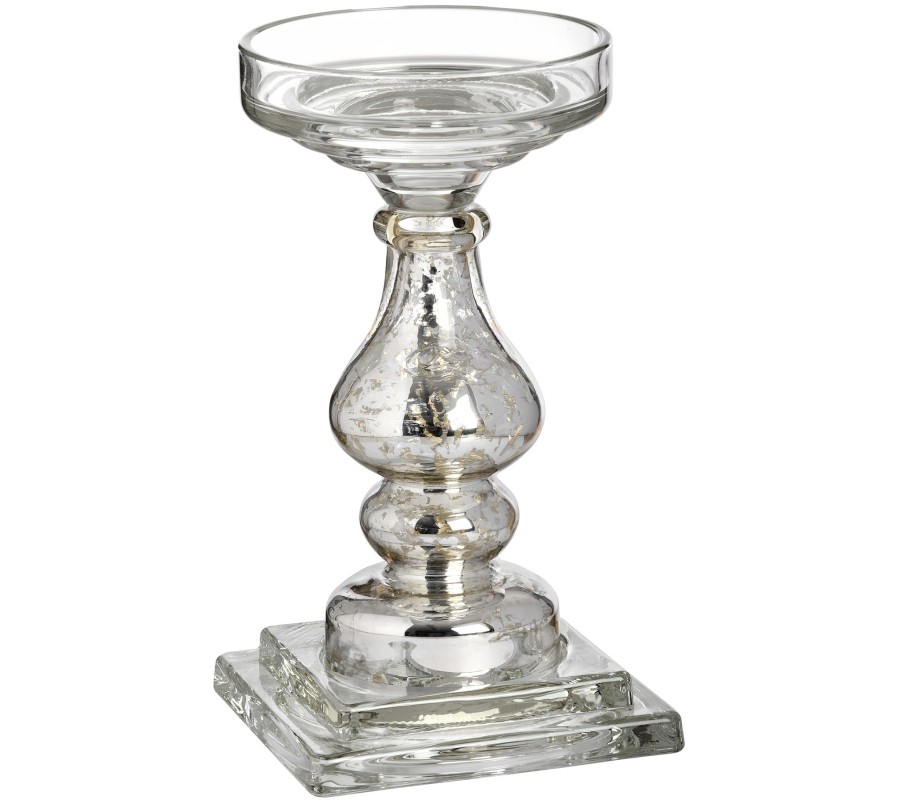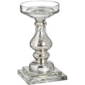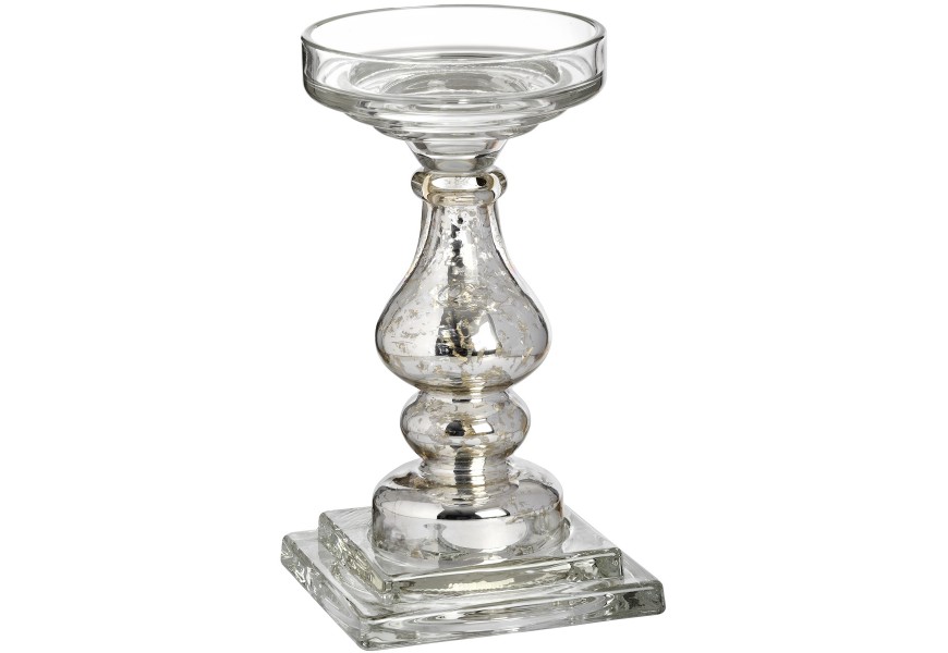 Dizajnový sklenený stojan na sviečku Galis s klasicky tvarovanou siluetou v striebornej farbe so zlatou patinou 24 cm
