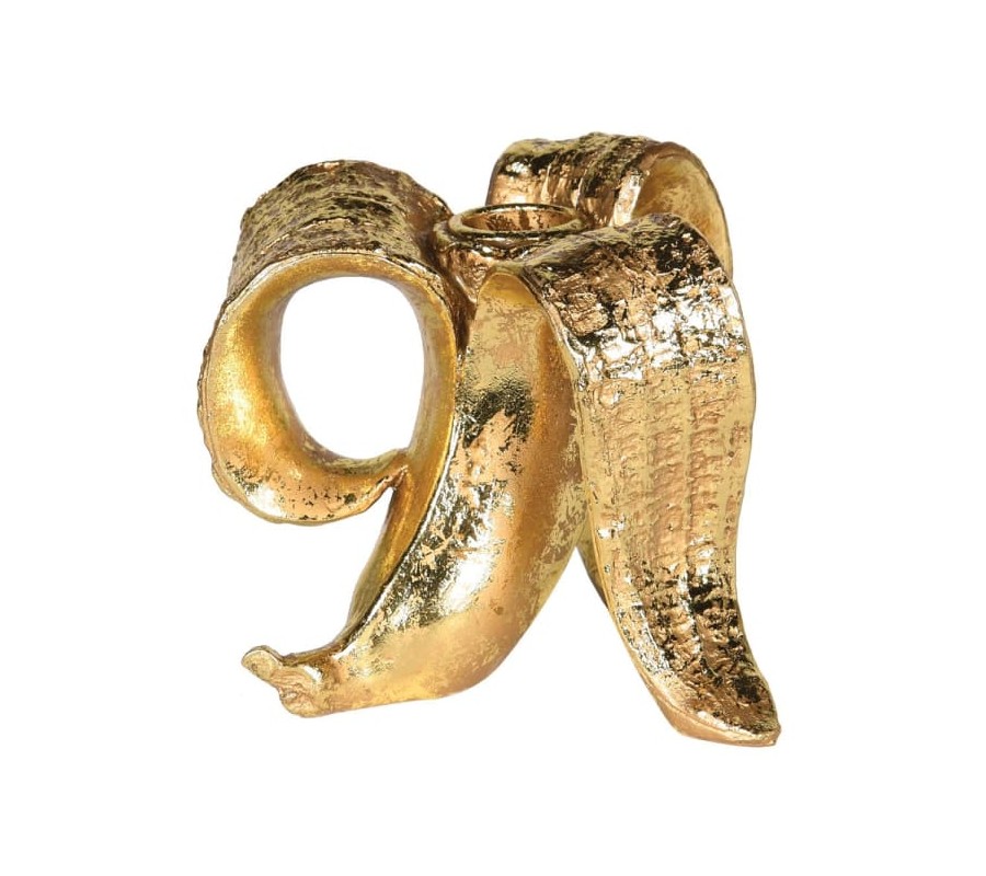 Svietnik Bananas sa hodí do moderne zariadených interiérov, kde vnesie originálny dizajnový prvok. Zlatá farba pôsobí luxusným dojmom, ktorý kontrastuje s tvarom dekorácie a robí z nej štýlový excentrický kúsok, ktorý oceníte aj v extravagantných interiéroch v glamour štýle.