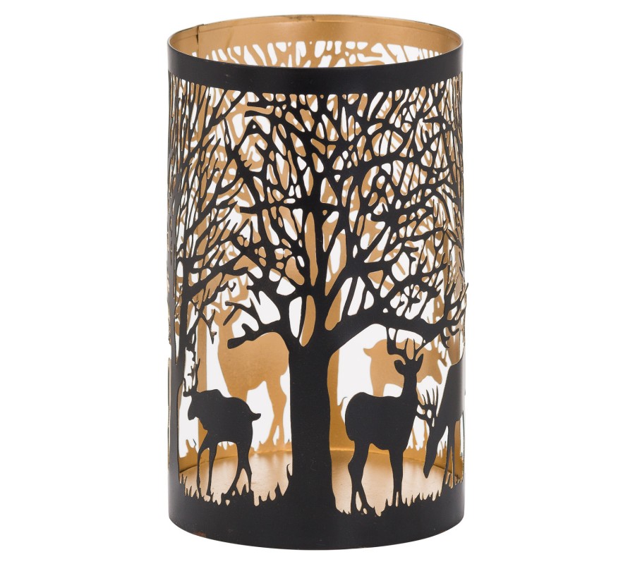 Jedinečný dekoratívny čierno-zlatý lampáš Torbeo I s vyrezávaným lesným motívom 20cm