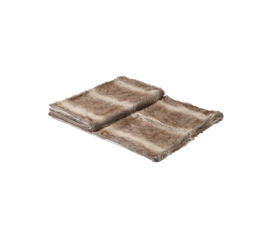 Štýlová moderná obdĺžniková hnedo krémová deka Jarun z umelej kožušiny s dlhým vlasom s pásikovým vzorom 180 cm
