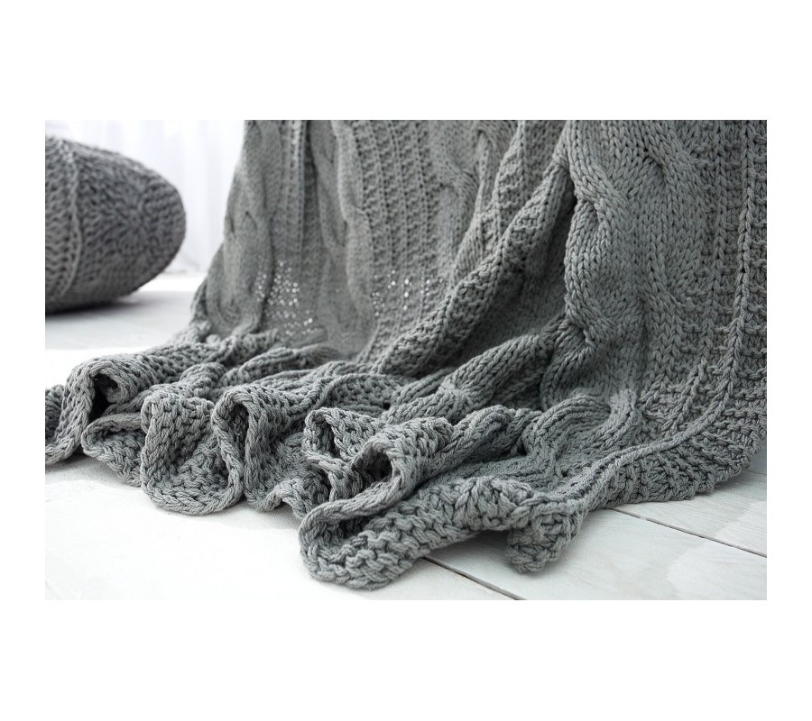 Deka Cosy II je ručne pletená deka, ktorá zútulní či už vašu sedačku, posteľ alebo čokoľvek iné. Vďaka elegantnej šedej farbe sa hodí do širokého záberu priestorov. 100% Bavlna zaručuje najvyššiu kvalitu úpletu.
