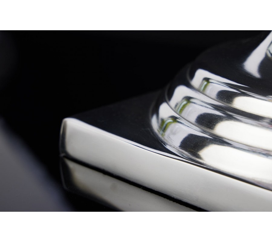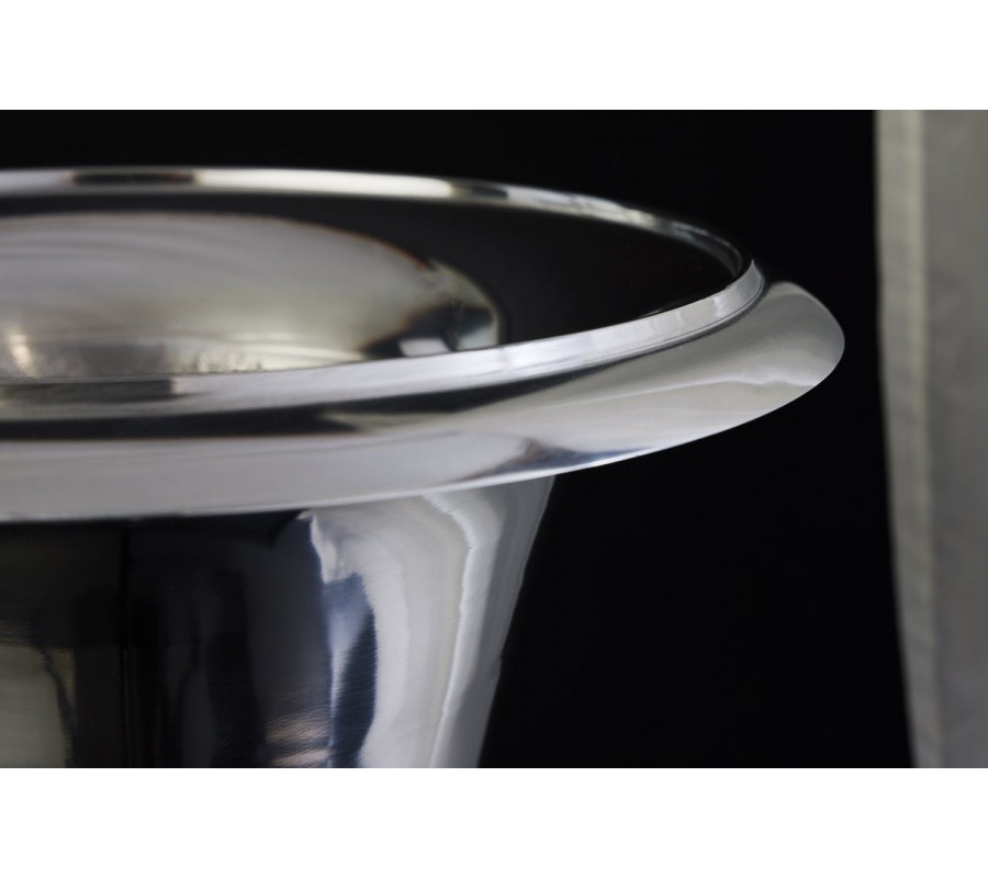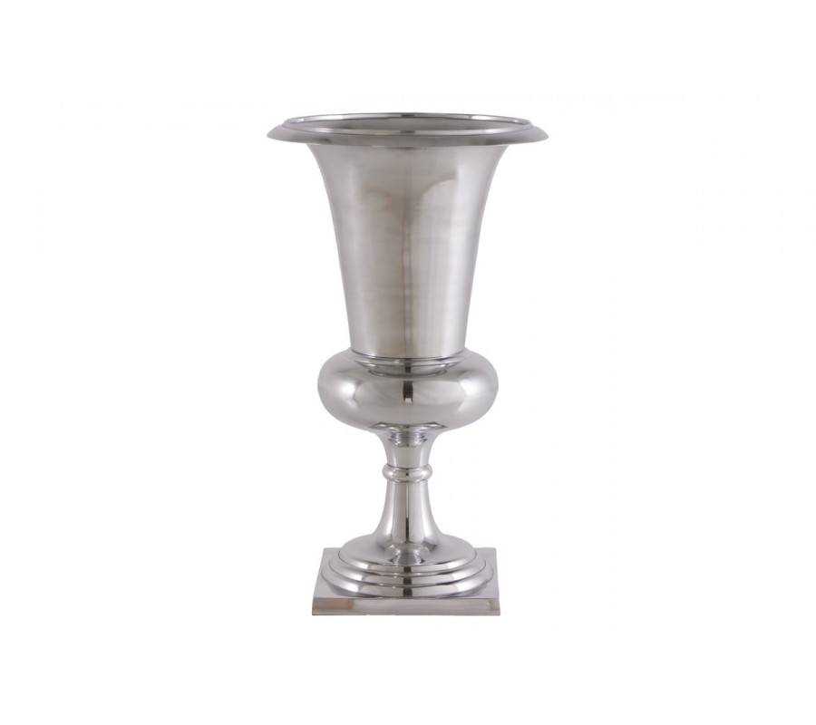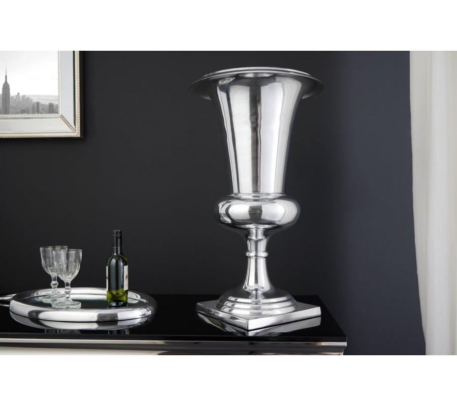 Dekoračná váza Celeste vyniká elegantným tvarom a žiarivým chrómovým povrchom, ktorý odráža svetlo a dodáva priestoru noblesný lesk. Jej okrúhle telo sa smerom nahor pôsobivo rozširuje, pričom horný okraj je jemne vytočený smerom von, čím vytvára ladnú siluetu inšpirovanú klasickými čašami.