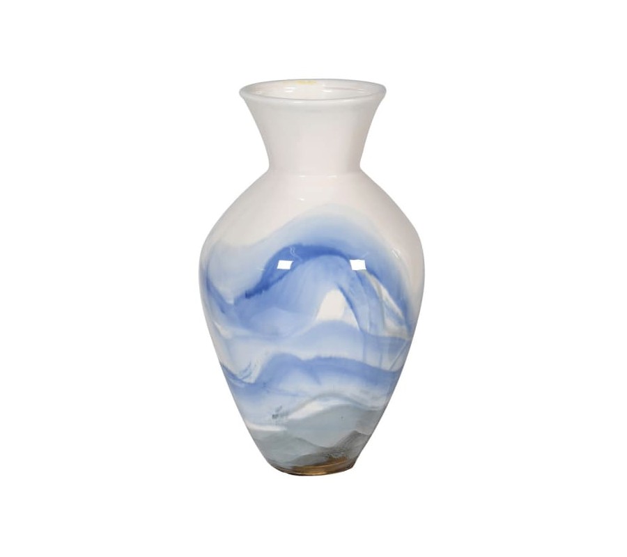 Štýlová okrúhla keramická váza Blair zaujme svojím nestarnúcim dizajnom a spríjmní akýkoľvek interiér. Kombinácia bielej farby a modrej maľby vytvára jednoduchý, no ikonický dizajn. Váza Blair je ručne maľovaná a tak je každý kúsok unikátny a jedinečný. Je vhodná pre každého, kto si chce spríjemniť svoje bývanie a ocení umeleckú stránku vázy Blair. Odporúčame kombinovať s masívnym dreveným nábytkom a s inými dekoráciami svetlých farieb.