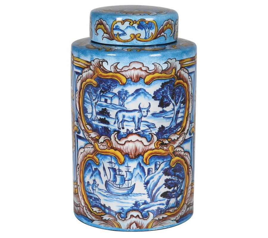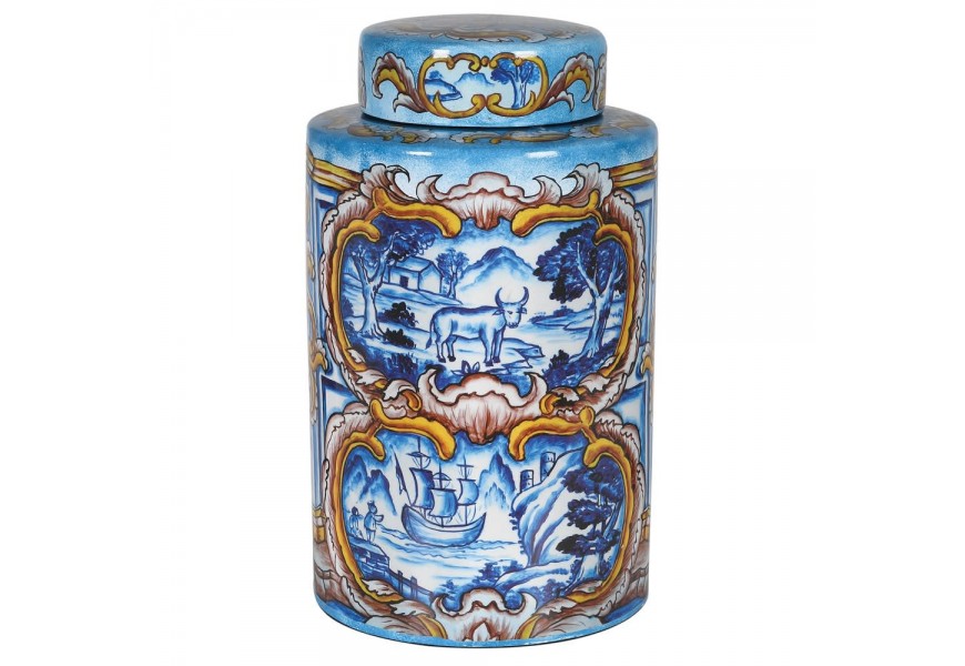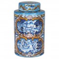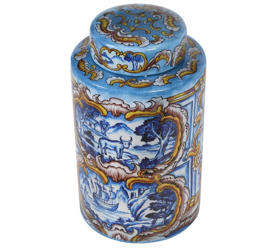 Keramická modrá dóza so zdobením v štýle talianskej majoliky 28cm