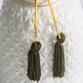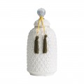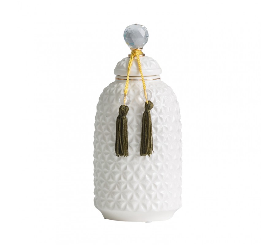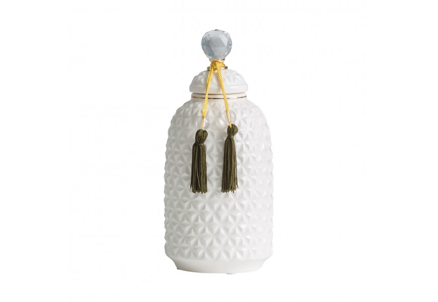Luxusná orientálna nádoba s vrchnákom Heros v bielej farbe s reliéfnym diamantovým vzorom a strapcami 30 cm