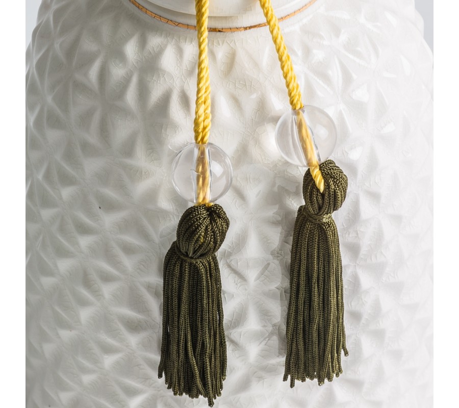 Luxusná orientálna nádoba s vrchnákom Heros v bielej farbe s reliéfnym diamantovým vzorom a strapcami 30 cm
