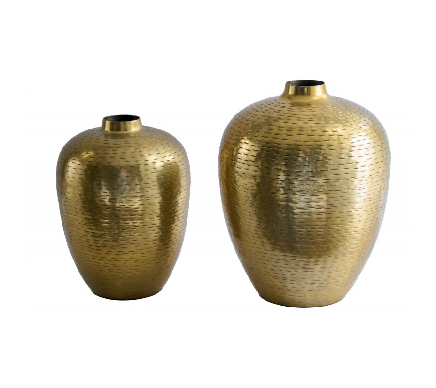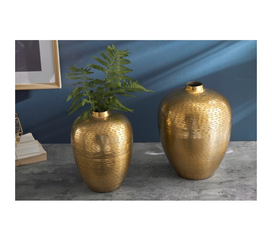 Dizajnový set dvoch zlatých váz Mumbai v orientálnom štýle z kovu s kladivkovým vzorom
