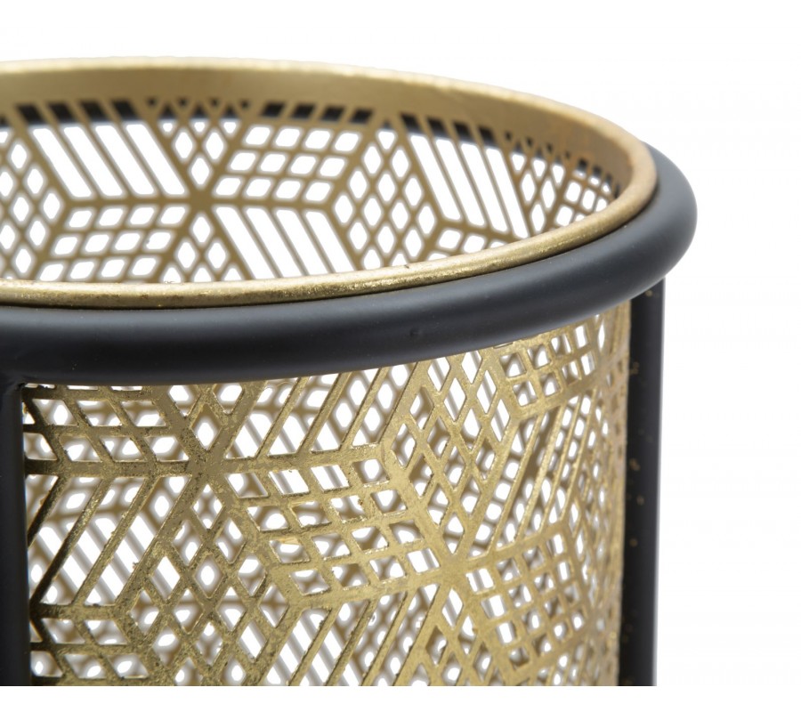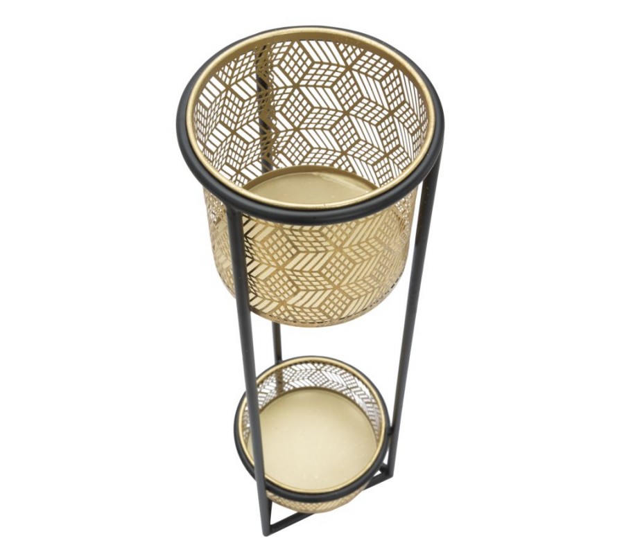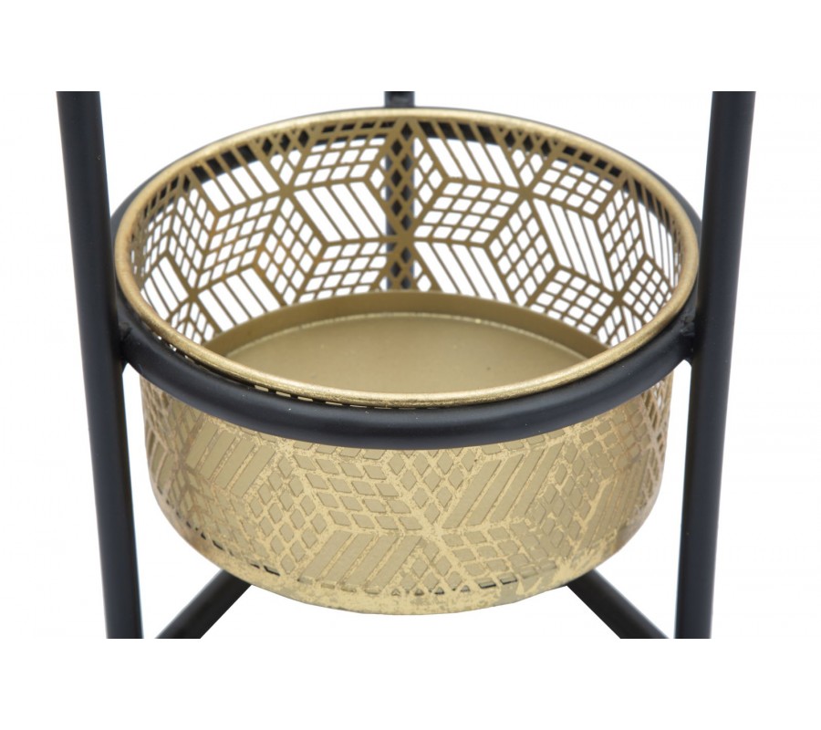Glamour okrúhly kvetináč Zafira s čiernym kovovým rámom a dvoma perforovanými zlatými košíkmi 80 cm
