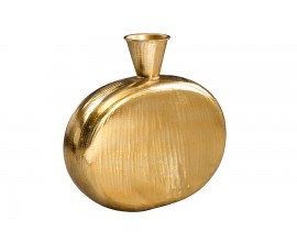 Art deco oválna kovová zlatá váza Aleny s lesklým štruktúrovaným povrchom 65 cm