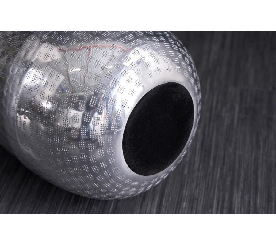 Orientálna kovová strieborná váza Mara s vybíjaným detailom s lesklým povrchom v oblom tvare s okrúhlym otvorom 50 cm