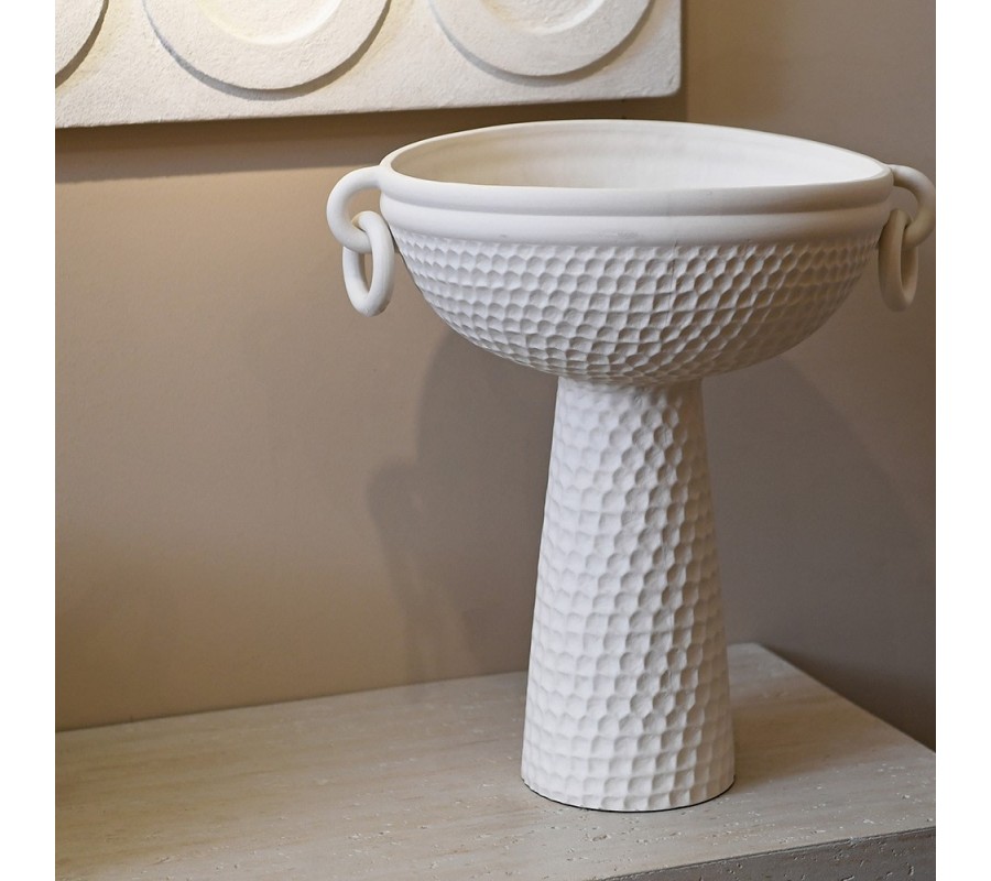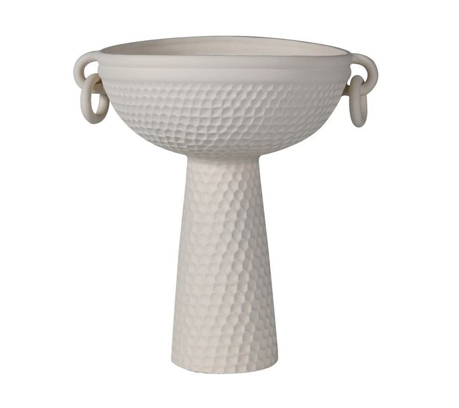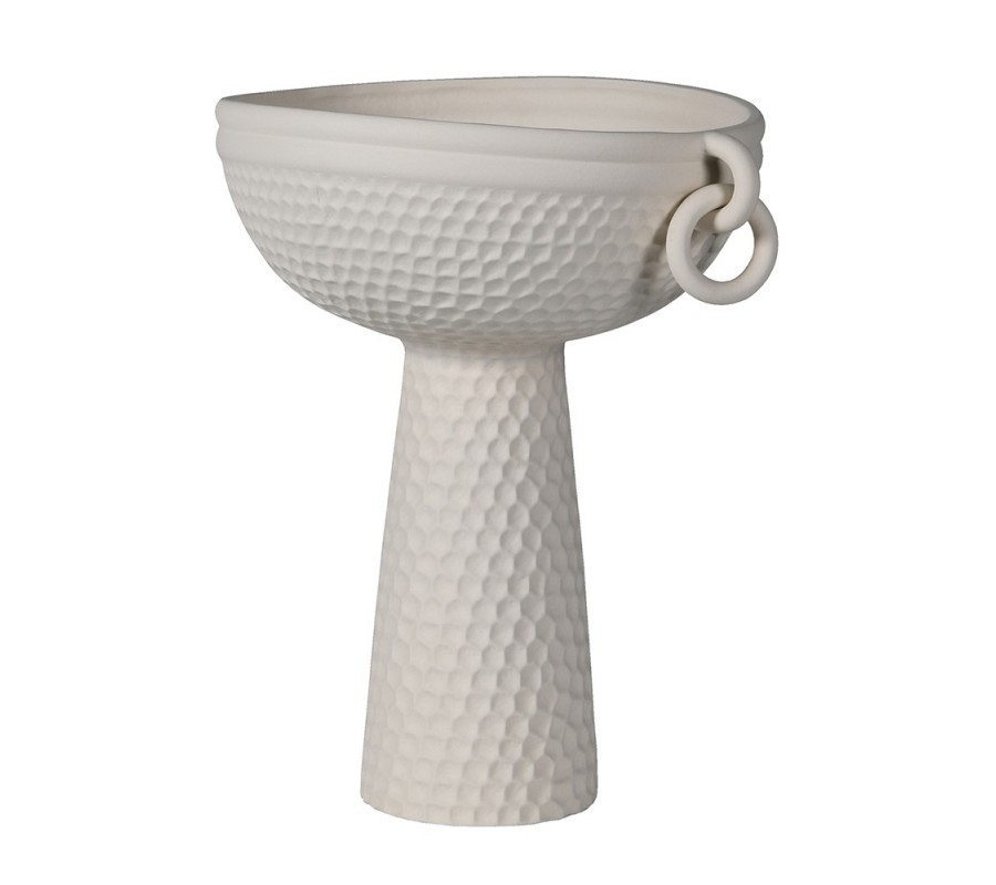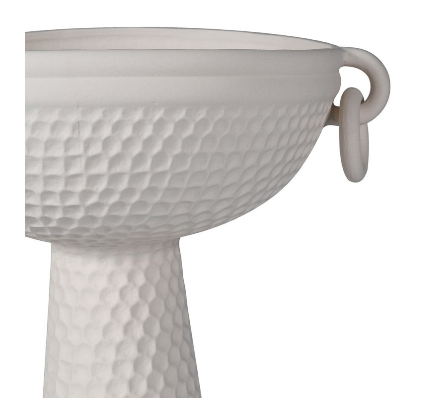 Dizajnová porcelánová biela váza Ardea v tvare misy na kužeľovej nohe s ručne zdobeným štruktúrovaným povrchom 42 cm