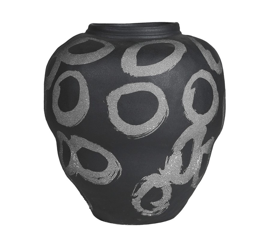 Dominantným výtvarným prvkom sú po celom obvode rozmiestnené dekoratívne kruhové vzory v sivej farbe. Ich ručne pôsobiaca nepravidelnosť evokuje moderné umenie a pripomína štetcom maľované krúžky, ktoré dodávajú váze hravosť.