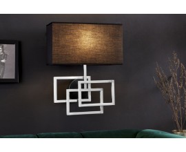 Art-deco dizajnová nástenná lampa Astria v striebornom prevedení s čiernym tienidlom 44cm