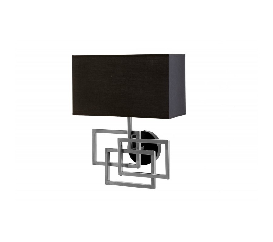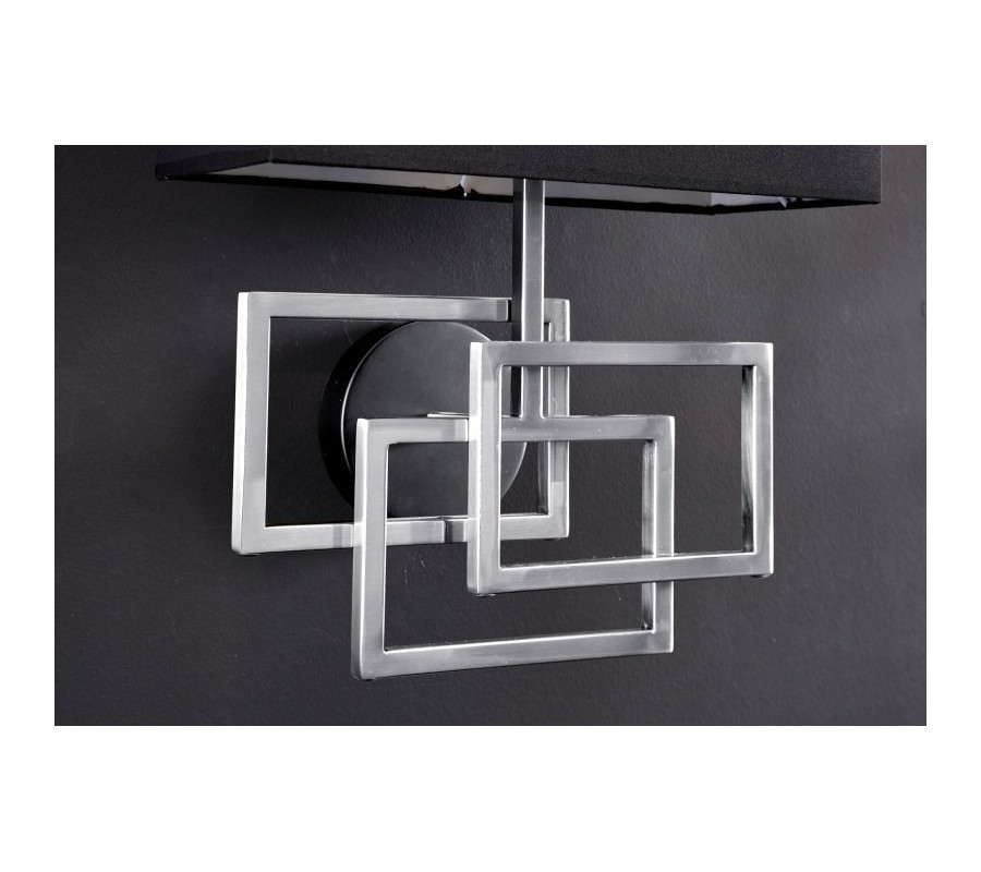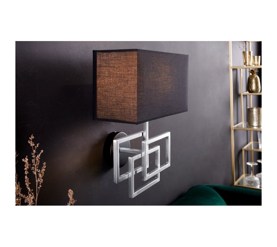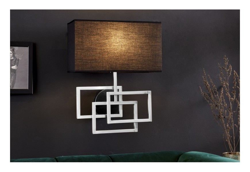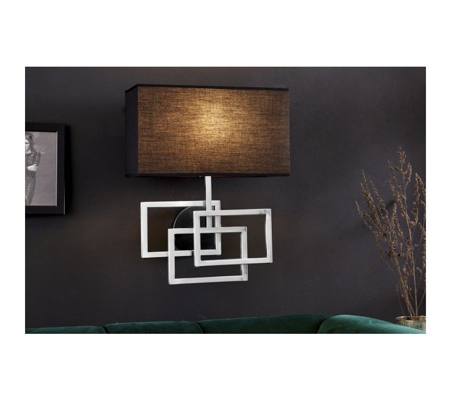 Hľadáte oživenie pre svoju spálňu, obývačku či dokonca hotelové a barové priestory? Jednoducho ho docielite s nástennou lampou Astria, ktorá na prvý pohľad zapôsobí a presvetlí interiér. Lampa pozostáva z masívnej kovovej podstavy v striebornej farbe a je tvorená tromi kovovými obdĺžnikmi rozloženými okolo montážnej dosky. Hranaté čierne tienidlo lampy vytvára žiadúci kontrast s lesklou striebornou podstavou a necháva priestor vašej fantázii pri výbere doplnkov a ostatných kúskov zariadenia. Lampa Astria sa bude vynímať s výraznými farbami ako aj s tlmenými zemitými farbami. Je vhodné zladiť ju so strieborným kovovým nábytkom, prípadne s kúskami so zrkadlovými aplikáciami.