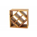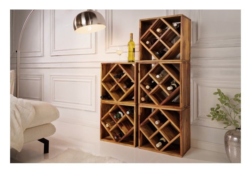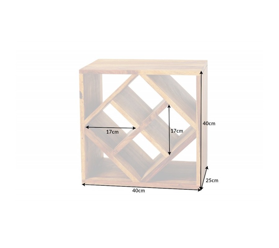 Mať svoj obľúbený nápoj po ruke a štýlovo uskladnený? To je snom nejedného milovníka kvalitného vína. Kompaktným riešením je vinotéka Wissimo z kvalitného tvrdého palisandrového dreva. Jej masívna konštrukcia v tvare štvorca dokáže šikovne uschovať až 8 fliaš vína či iného vami preferovaného nápoja. Jednotlivé priehradky s veľkosťou 17x17cm sú ukladané kosoštvorcovito. Telo vinotéky nedisponuje nožičkami, a tak je možné niekoľko vinoték uložiť na seba a vytvoriť tým praktický rozkladateľný regál, ktorý skvelo doplní vašu obývačku, jedáleň či domácu herňu. Zaujímavá kresba dreva v odtieňoch hnedej farbe dokonale vynikne vďaka lesklému priehľadnému náteru na povrchu vinotéky. Masívna vinotéka Wissimo sa bude výborne hodiť k príručnému stolíku Bareo z našej ponuky.