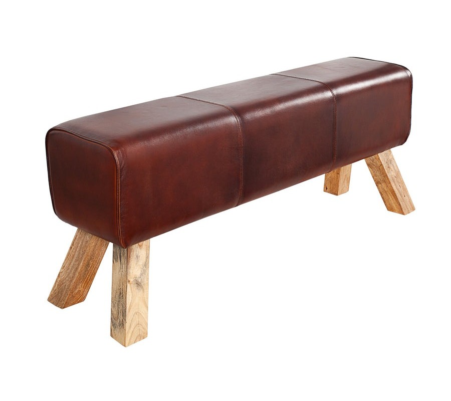 Lavica Bock je výrazný a originálny kúsok nábytku s robustným vzhľadom a nostalgickým charakterom. Má obdĺžnikový tvar, je čalúnená a potiahnutá kvalitnou pravou kožou v červeno hnedom odtieni a jej povrch je jemne prešívaný do troch častí. Vzhľadom pripomína klasickú gymnastickú kozu alebo odkladací prvok na sedlá pre kone, čím vnáša do priestoru netradičný športový akcent.