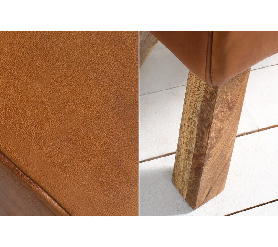 Luxusná moderná lavica Bock Kult z pravej kože v originálnom prevedení. Lavica je vyrobená z kvalitnej kože a nohy lavice sú vyrobené z kvalitného masívneho dreva. Každá stolička je unikátna individuálnym zafarbením kože a štruktúrou masívneho dreva. Je vhodná do interiérov zariadených v rôznych štýloch.