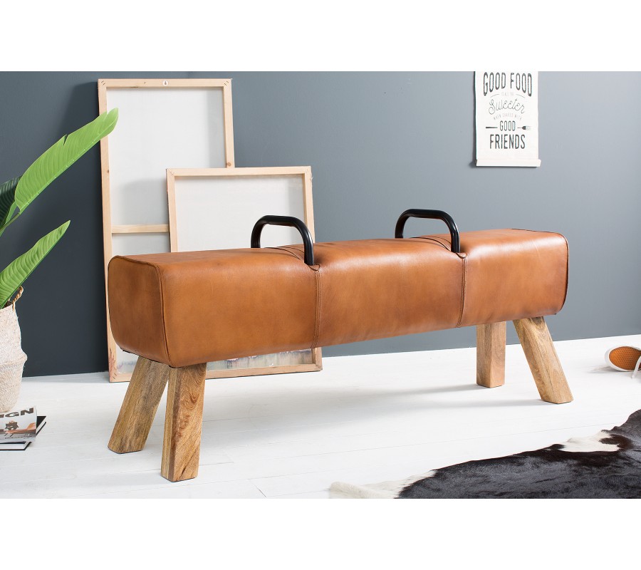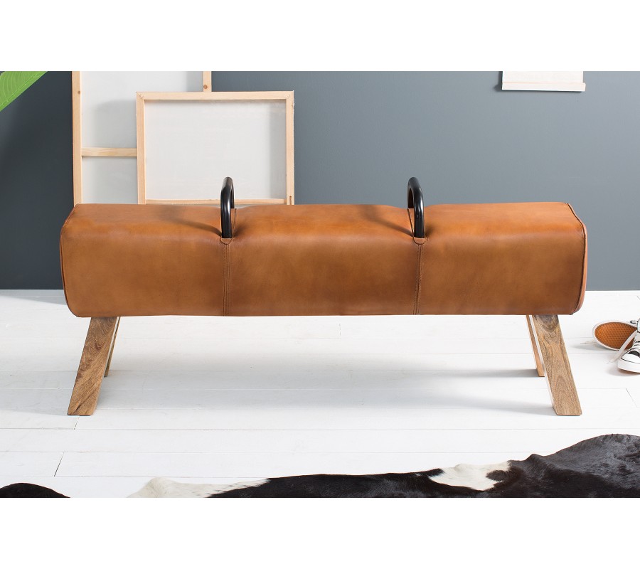 Dizajnová luxusná lavica Bock Kult z pravej kože 134cm