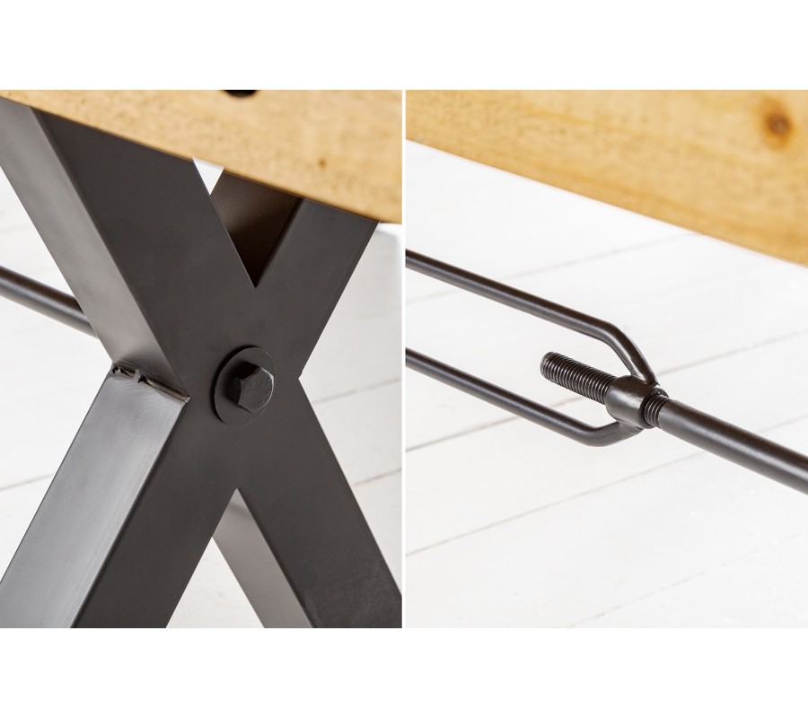 Lavica Freya je vyrobená z borovicového masívu, čo zabezpečuje nielen pevnosť a stabilitu, ale aj prírodný a autentický vzhľad. Hnedá farba dodáva lavici teplý a príjemný nádych, zatiaľ čo čierne kovové nožičky pridávajú do dizajnu moderný a industriálny vizuál. Na lavicu s poholdnosťou usadíte štyri až päť osôb. S jedálenským stolom Freya v rovnakej kolekcii dokonale vytvoríte kombináciu industriálneho dizajnu.
