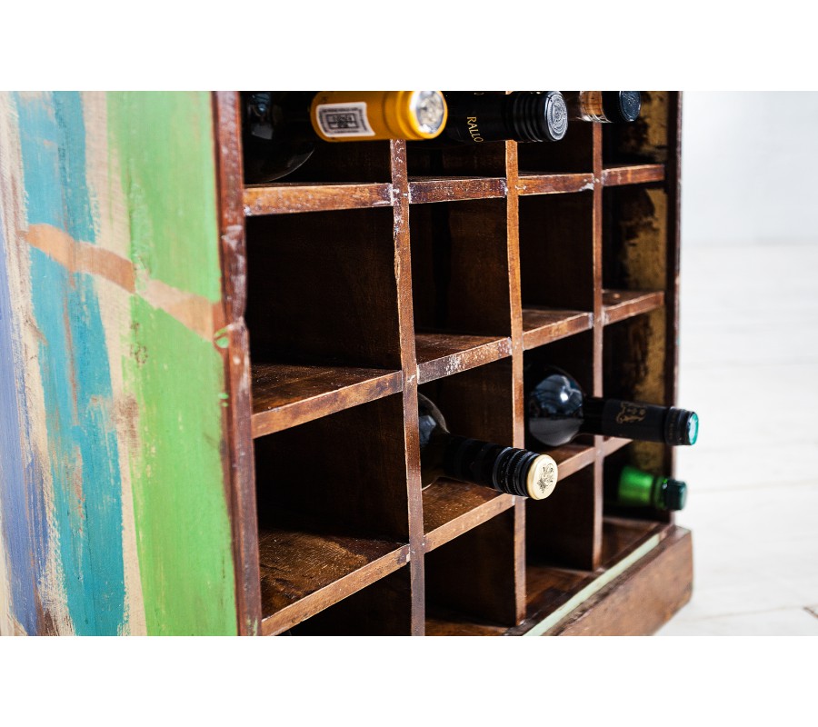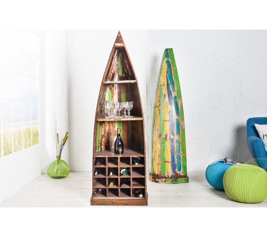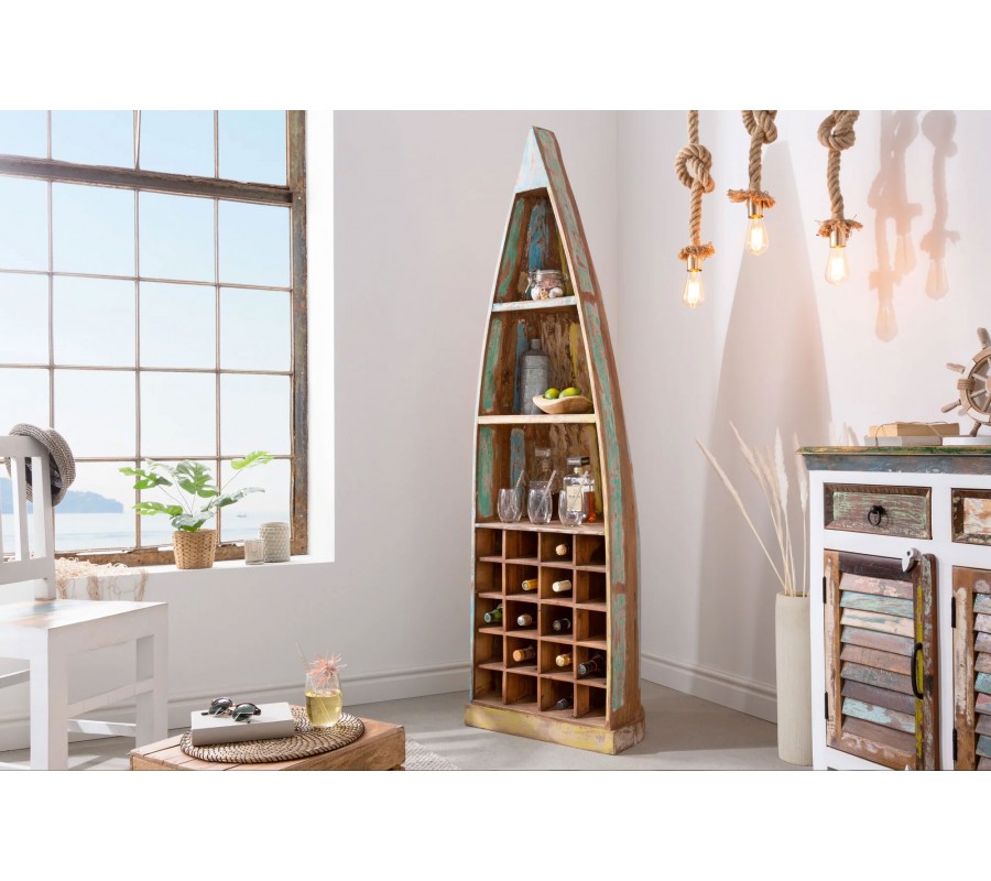 Štýlová vinotéka v podobe recyklovanej lodi je krásnym doplnkom do obývacích izieb všetkých rôznych štýlov.