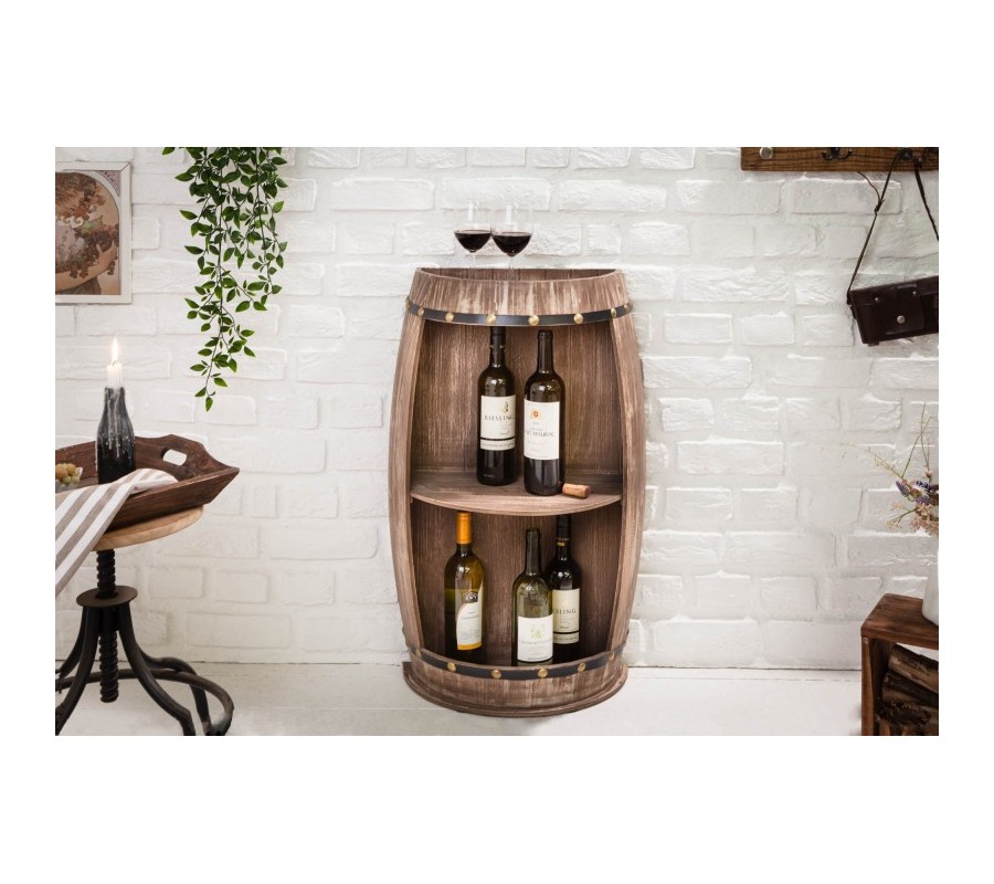 Dizajnová vinotéka Crawley je štýlovým doplnkom do všetkých vidiecky ladených domovov. Tento jedinečný kúsok vám v obývačke vyčaruje nádherný útulný dojem a dodá nádych starých čias, a to najmä vďaka prírodnému materiálu. Masívne jedľové drevo sa nesie v naturálnej hnedej farbe a krásne vynikne najmä v svetlých priestoroch. Vinotéka Crawley disponuje dvomi praktickými poličkami a priestor na vrchu sa dá využiť na odkladanie pohárov či menšie dekorácie. Keďže ide o ručnú prácu, na povrchu možno vidieť menšie odchýlky, ktoré robia každý jeden kúsok originálnym. Celkový dizajn je doplnený čierno-zlatým ozdobným prvkom v spodnej i vrchnej časti vinotéky.