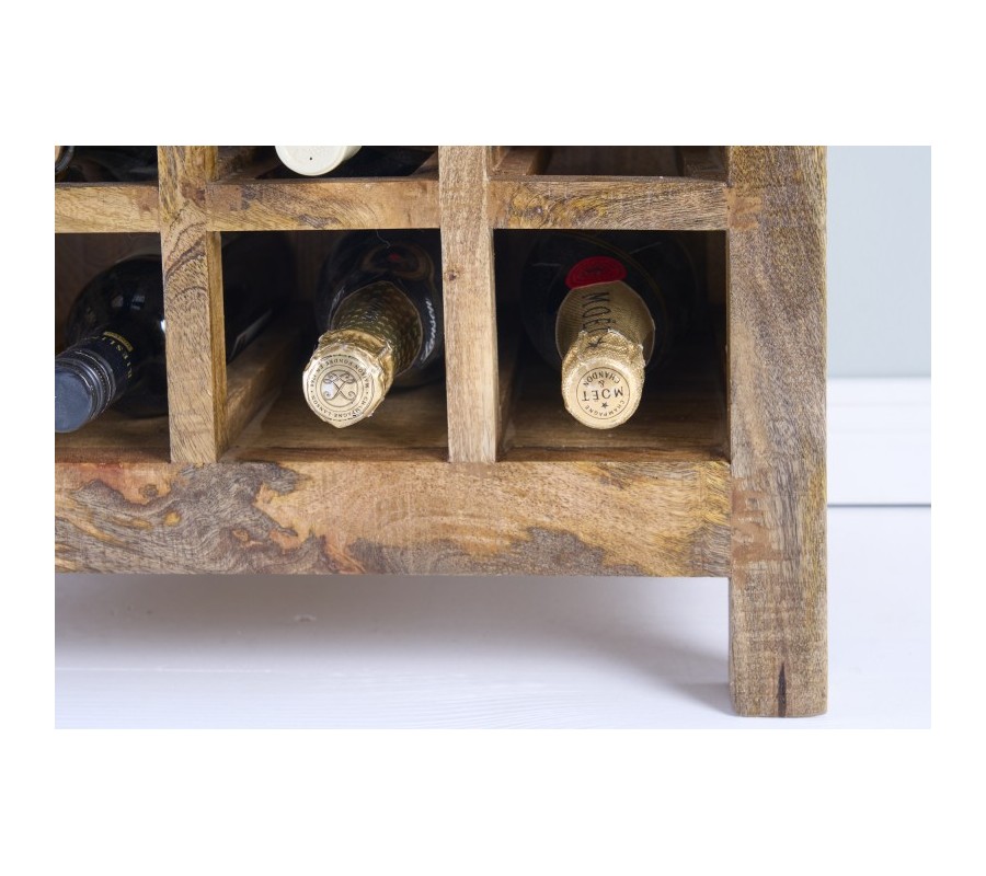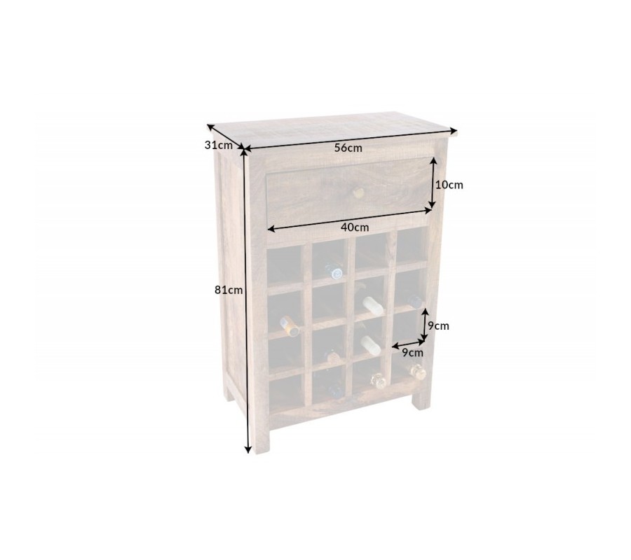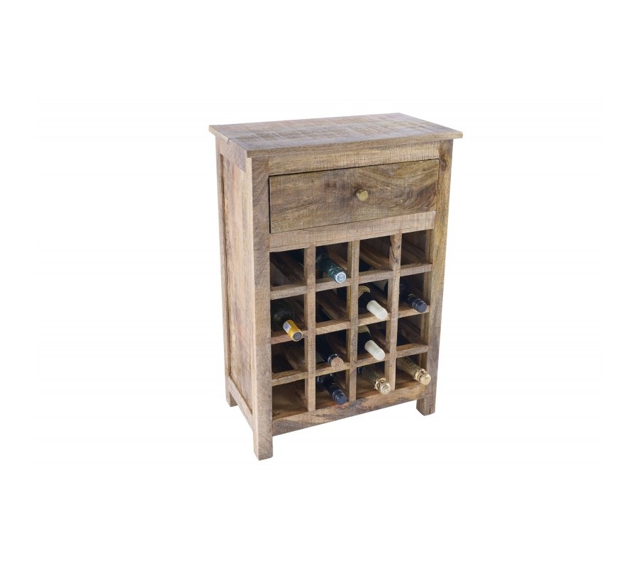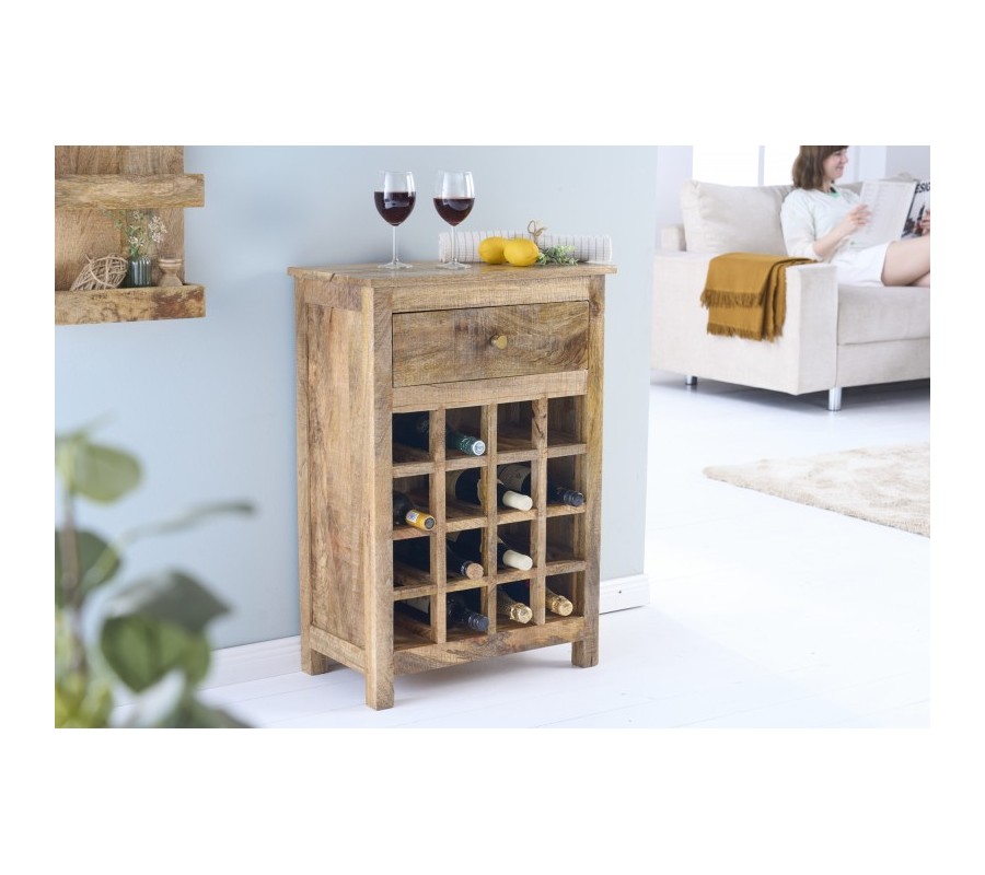 Vidiecka masívna vinotéka Hemingway z mangového dreva so zásuvkou a šestnástimi priehradkami na víno 81cm