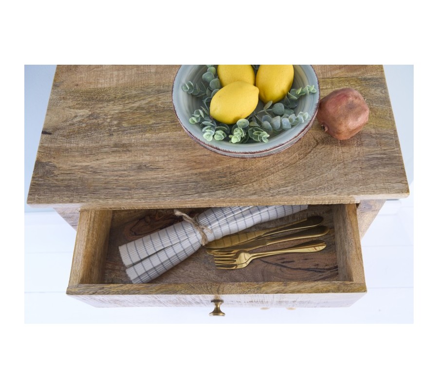 Jedinečná vinotéka Hemingway predstavuje štýlový a praktický doplnok vhodný do každej domácnosti ladenej vo vidieckom či naturálnom štýle. Disponuje bohatým úložným priestorom v podobe šestnástich priehradok na vínové fľaše a praktickej zásuvky. Je vyrobená z kvalitného mangového masívneho dreva s prírodnou svetlohnedou povrchovou úpravou, ktorá necháva vyniknúť jeho nádhernú kresbu. Pre dlhšiu životnosť a kvalitu je drevo opatrené vsrtvou ochranného laku. Vinotéka pôsobí elegantným naturálnym dojmom a dopomôže k zútulneniu vášho interiéru, či už ju umiestnite do obývačky, jedálne alebo barových priestorov tématicky ladených reštaurácií alebo kaviarní. Vinotéka Hemingway krásne vynikne v kombinácii s ďalšími kúskami z tejto kolekcie alebo iným masívnym nábytkom, prírodnými dekoráciami a tkaninami v naturálnych odtieňoch.