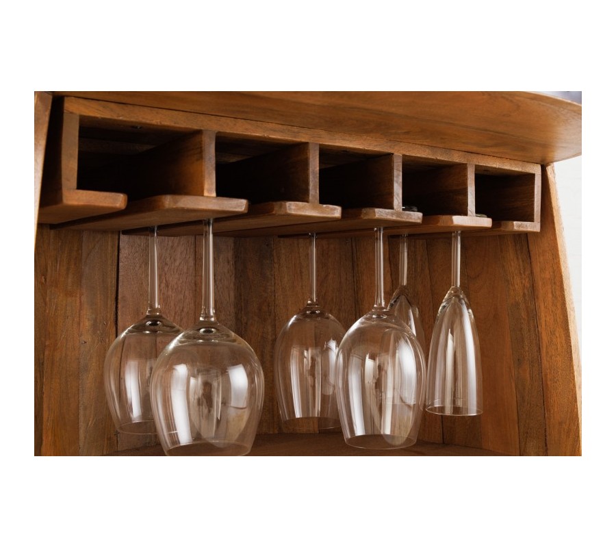 Industriálna vinotéka Crawley z masívneho mangového dreva s úložným priestorom na fľaše a poháre 90cm