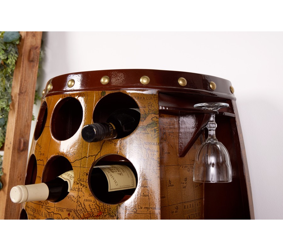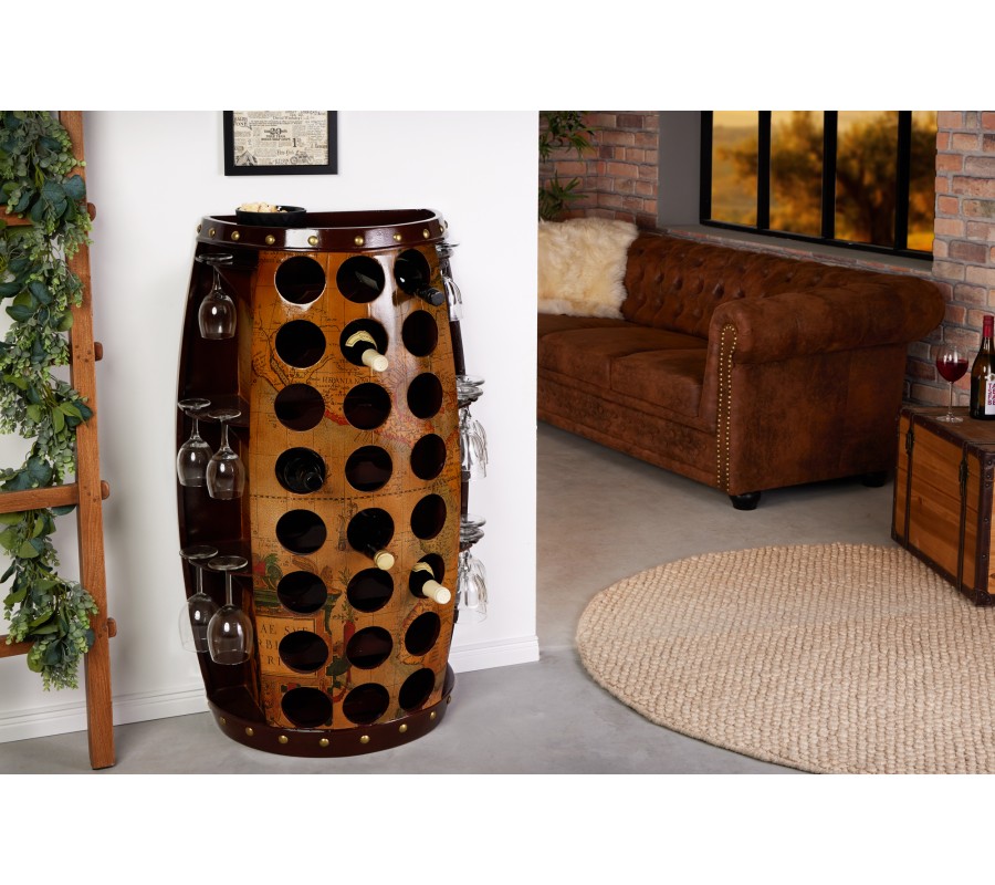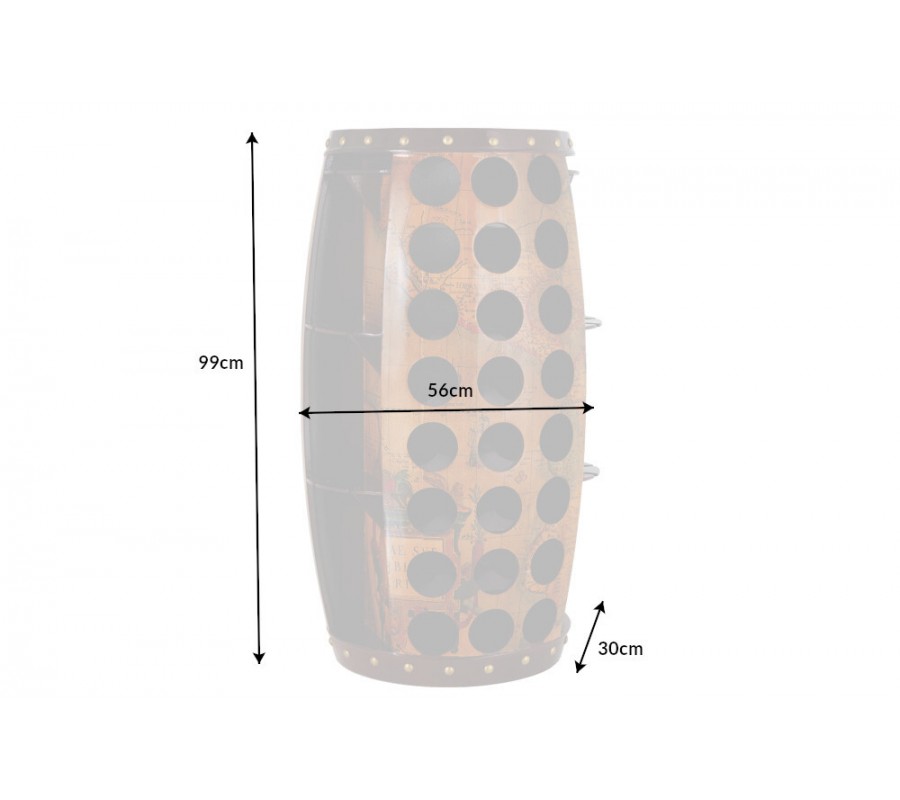 Atypická vinotéka Marles v hnedo zlatej farbe z maívneho dreva s potlačou v valcovitom tvare 99 cm