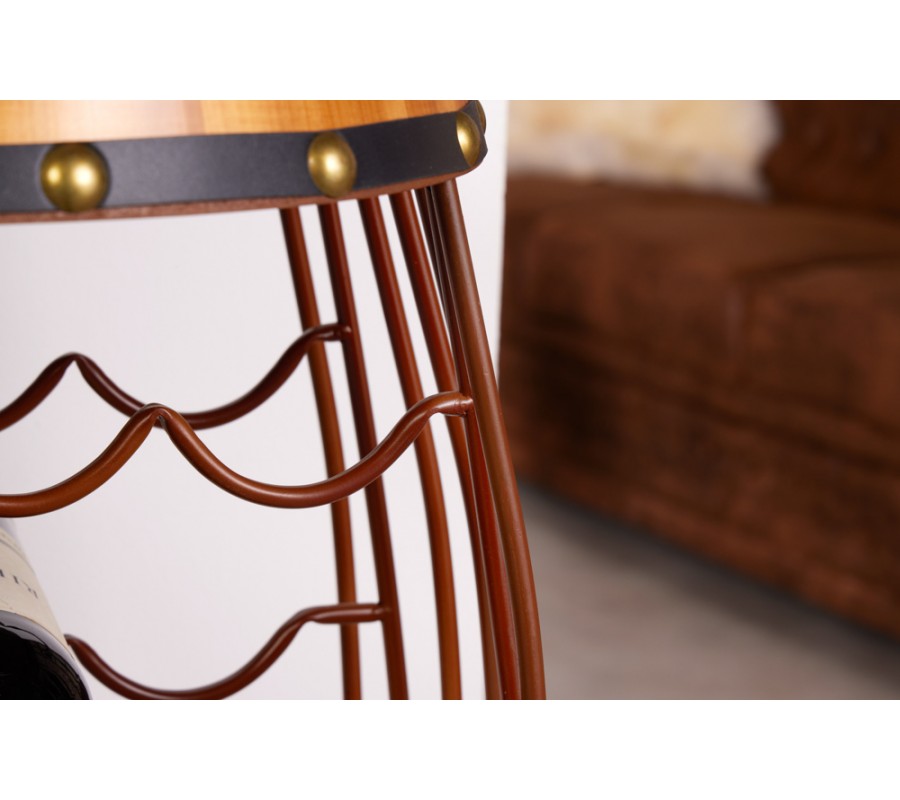 Vinotéka Crawley v koloniálnom štýle z masívneho dreva v hnedo zlatej farbe v oválnom tvare 81 cm