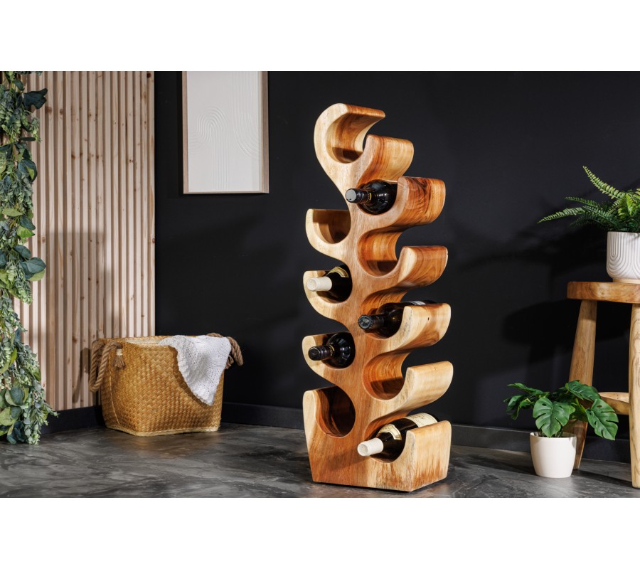 Dizajnový stojan na víno Milena z exotického lakovaného dreva Suar 80 cm