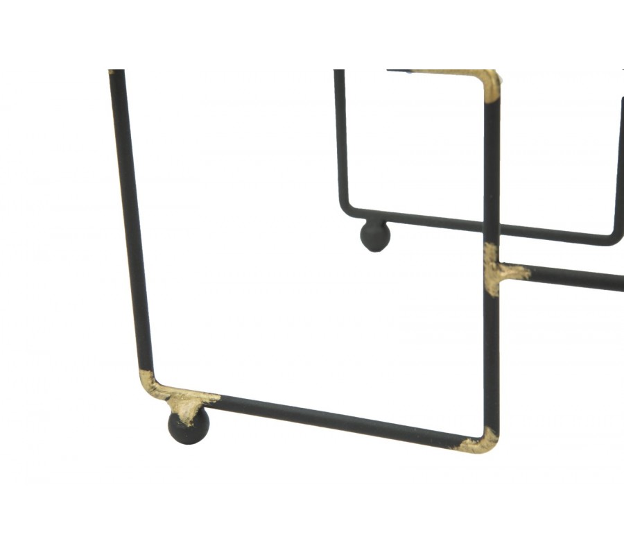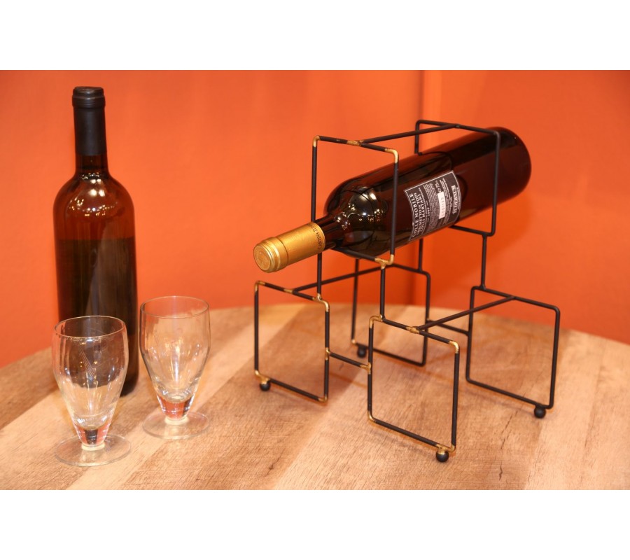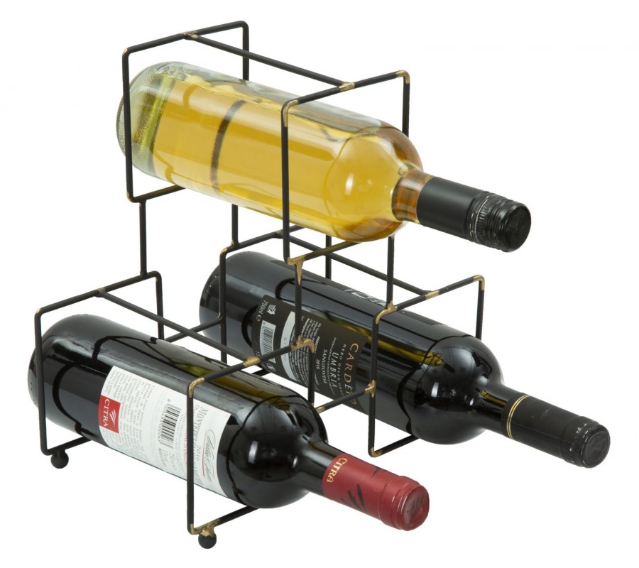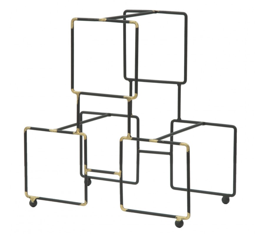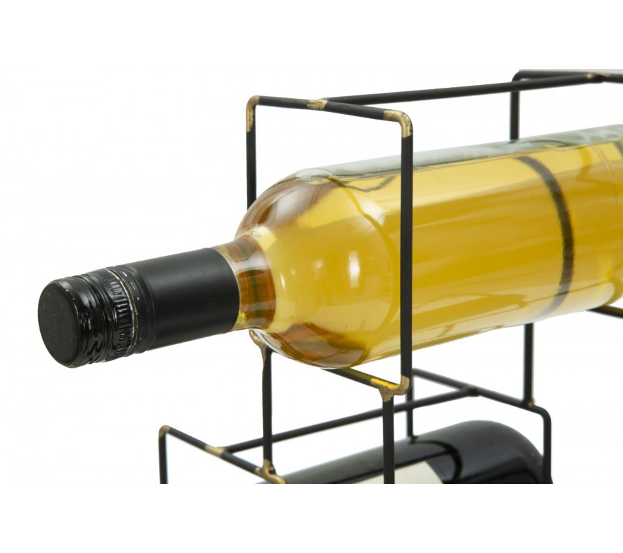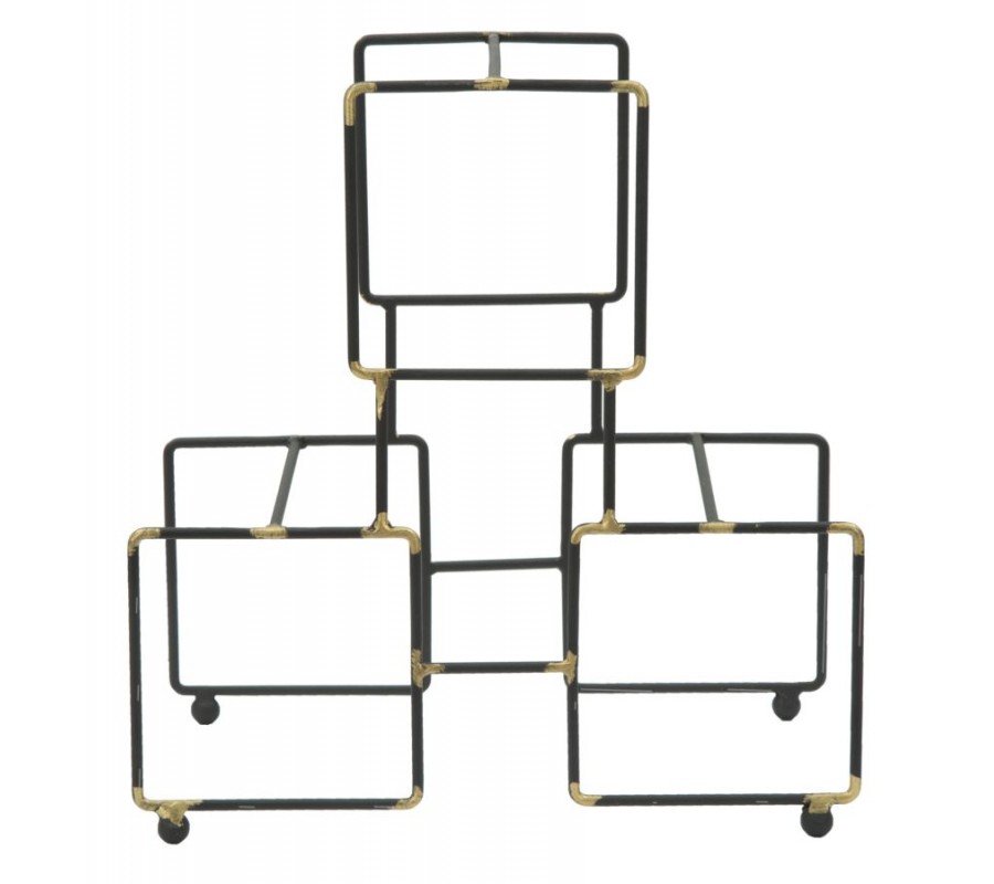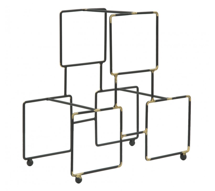 Industriálny stojan na tri fľaše vína Vivien v čiernej farbe so zlatými detailmi v štvorcovom tvare 27 cm