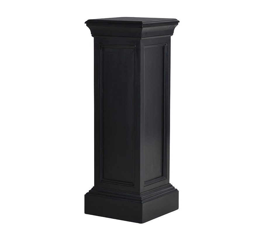 Podstavec Wielton Nero je výnimočný luxusný interiérový doplnok v koloniálnom štýle, ktorý kombinuje klasickú eleganciu s remeselnou precíznosťou. Vyrobený je z kombinácie masívneho mahagónového a dyhovaného dreva, známeho svojou pevnosťou, dlhou životnosťou a jemne kreslenou štruktúrou. Čierna povrchová úprava dodáva podstavcu moderný a zároveň dramatický vzhľad, ktorý krásne vynikne v kontraste so svetlými stenami či dekoráciami.