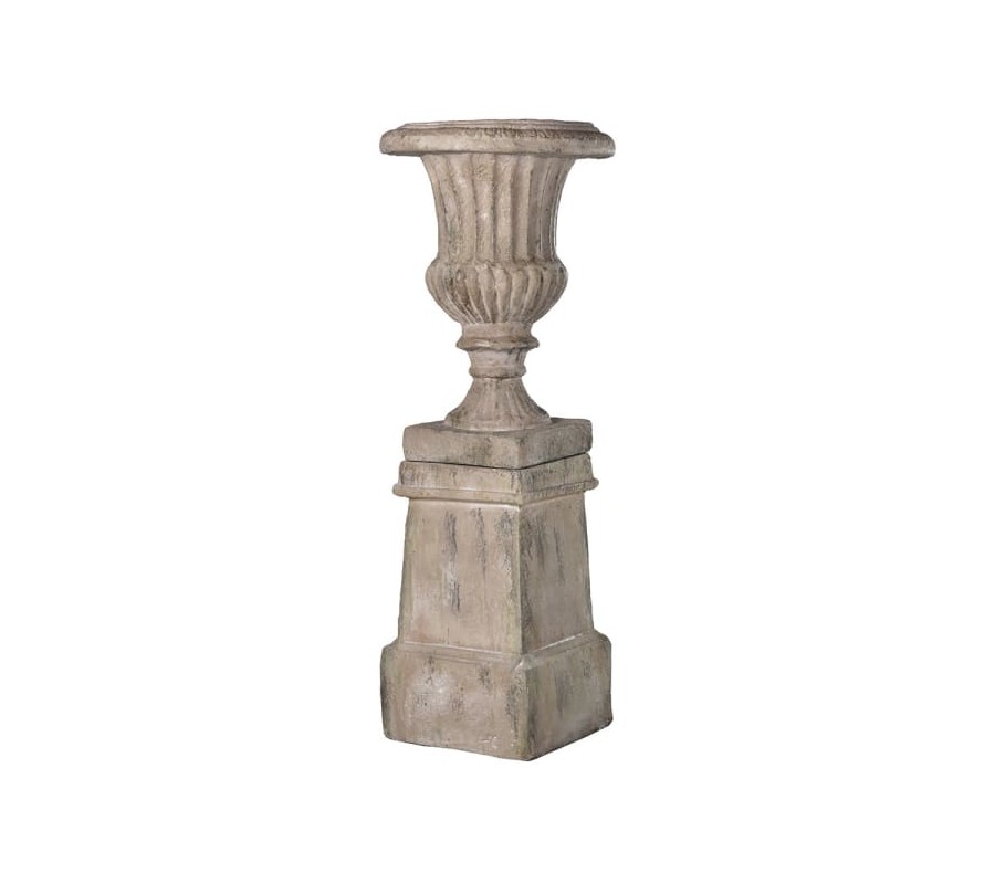 Antická kanelovaná urna Lima na podstavci vo vintage štýle s kamenným vizuálom