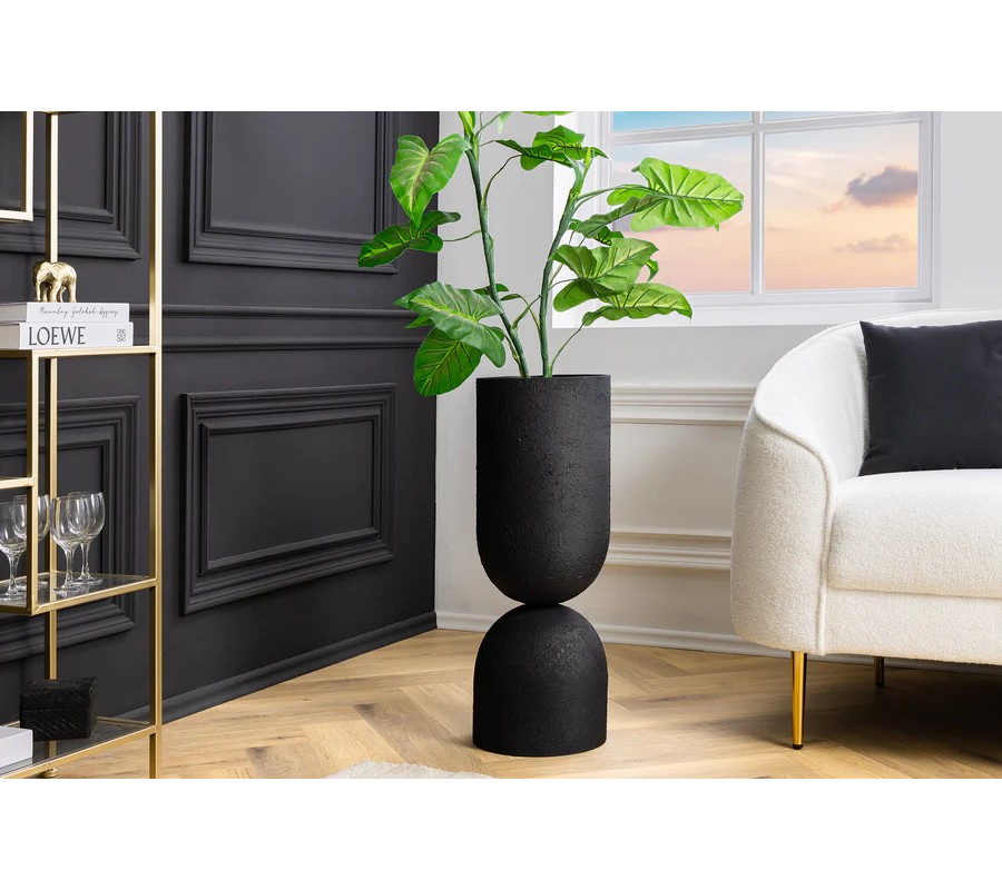 Art deco okrúhly kovový čierny podstavec na kvety Sola so štruktúrovaným matným povrchom s tvarom presýpacích hodín 56 cm