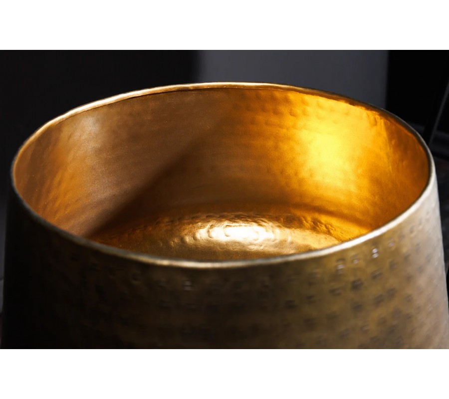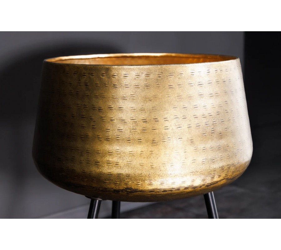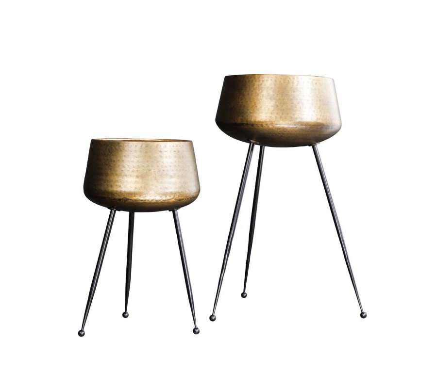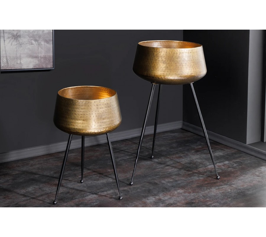 Sada kvetináčov Orbit zaujme luxusným vzhľadom, ktorý spája bronzový kovový povrch s kladivkovým vybíjaním a čierne kovové nožičky s elegantným zakončením. Obe nádoby majú okrúhly tvar so zúženou spodnou časťou, čo im dodáva štíhly a uhladený profil. Povrch je zdobený jemným kladivkovým vzorom, ktorý vytvára zaujímavú dekoratívnu štruktúru a zároveň zachováva decentný výraz.
