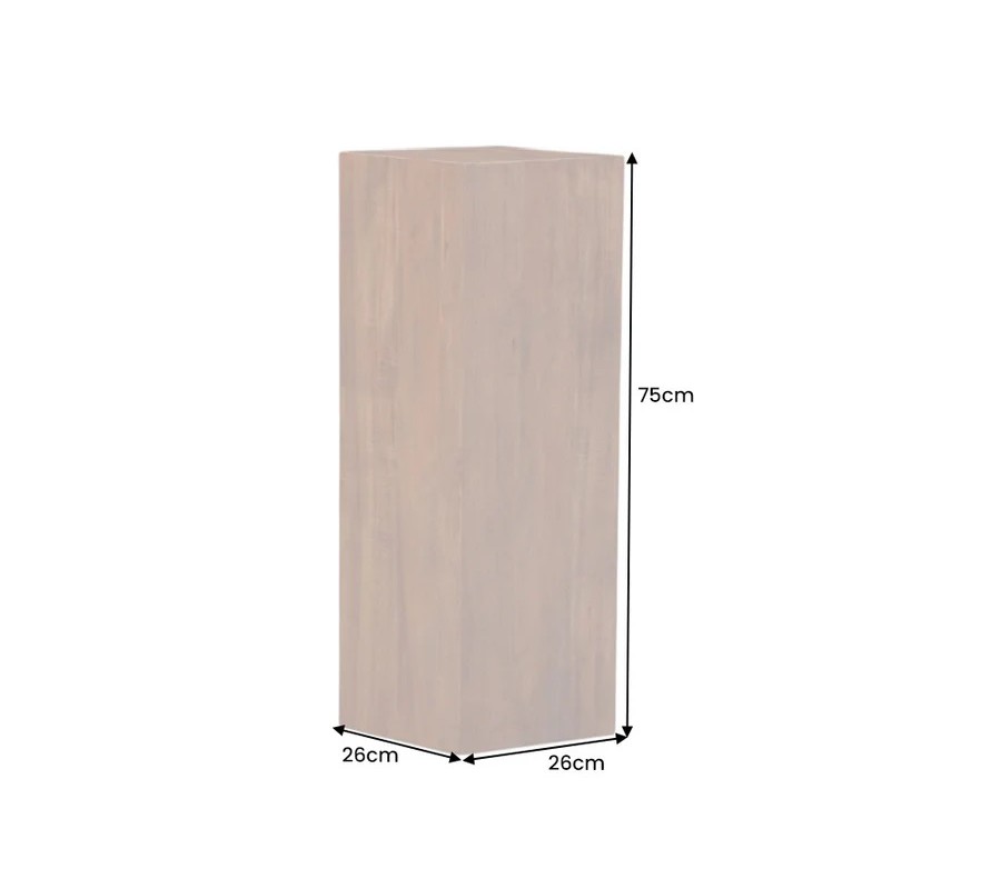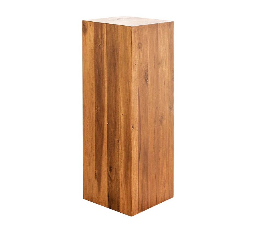 V interiéri sa uplatní ako podstavec pre sochy, vázy, dekorácie, izbové rastliny či menšie lampy. Skvele zapadne do vidieckych, prírodných, rustikálnych, etno aj moderných minimalistických priestorov, kde drevo zohráva dominantnú úlohu. Jednoduché línie umožňujú jeho kombinovanie s masívnymi stolmi, príručnými stolíkmi alebo komodami z teakového či akáciového dreva. Výborne ladí s doplnkami v čiernej, krémovej, béžovej, olivovej, medovej alebo bronzovej farbe.