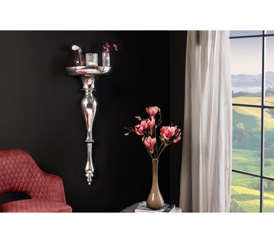 Luxusný barokový nástenný držiak Persephone v striebornej chrómovej úprave s odkladacou plochou 80 cm