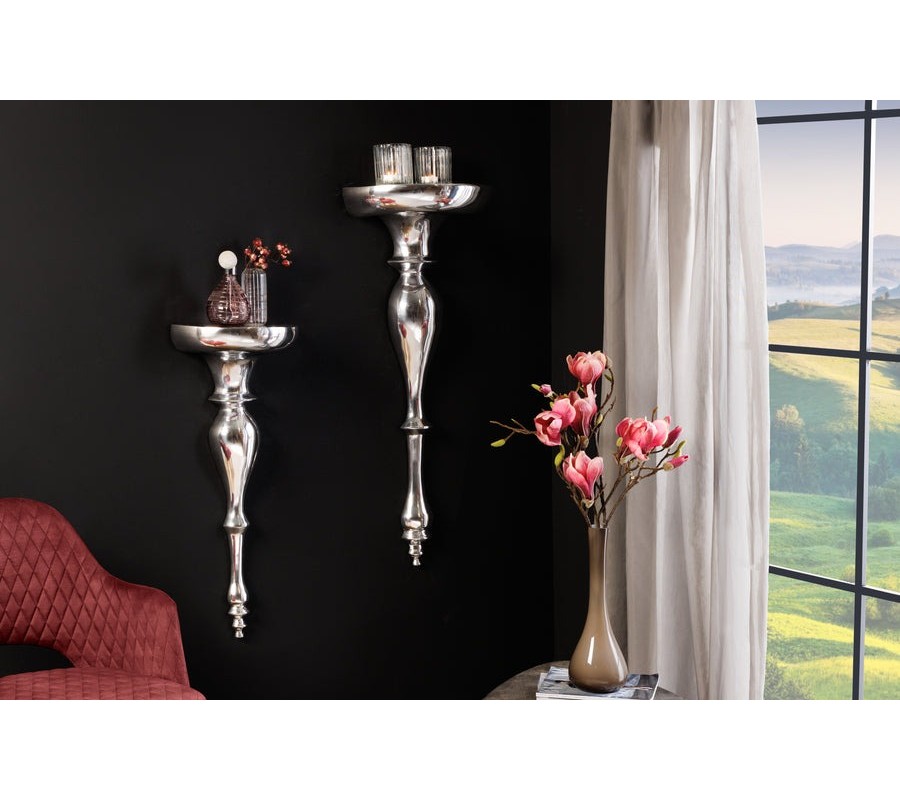 Nástenný držiak Persephone je výnimočný dekoratívny prvok v luxusnom barokovom štýle, ktorý okamžite zaujme svojou bohatou plastickou formou a lesklým chrómovým povrchom v striebornom odtieni. Vyrobený je z kovu a pôsobí ako elegantný detail, ktorý prepája historický nádych s moderným leskom.