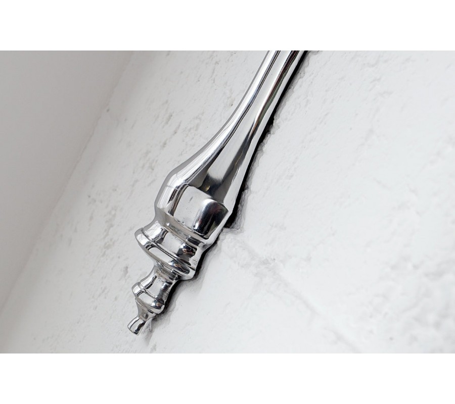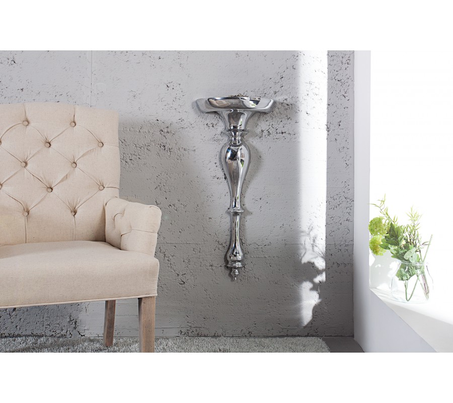 Nástenný držiak Persephone je výrazným dekoratívnym prvkom v klasickom barokovom štýle, ktorý okamžite upúta svojím luxusným lesklým chrómovým povrchom a rafinovaným tvarom. Celá konštrukcia je z kovu, v elegantnej striebornej farbe s vysokým leskom, ktorá odráža svetlo a dodáva priestoru noblesu.