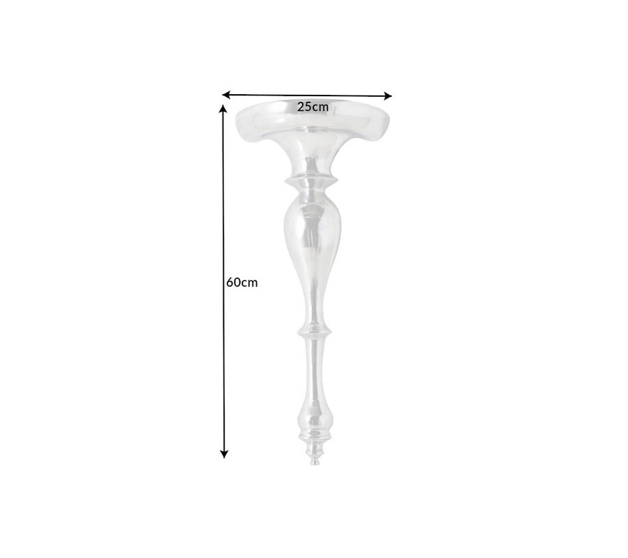 Telo držiaka má dynamický profil – zužuje sa v strede a rozširuje smerom hore i dole, pričom jeho tvar pripomína ozdobnú stĺpovú nohu alebo štýlový svietnik. Vrchná časť vytvára poličku čo umožňuje umiestnenie dekoratívnych prvkov ako sú vázy, svietniky, sochy alebo aranžmány z umelých kvetov.
