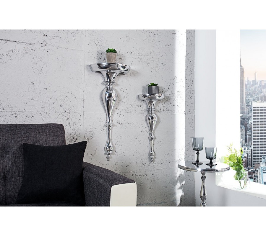 Tento nástenný konzolový držiak je ideálny na použitie v reprezentatívnych vstupných priestoroch, chodbách, salónoch, zámockých alebo glamour interiéroch. Skvele vynikne aj ako solitérna dekorácia alebo vo dvojici po bokoch zrkadla, dverí či obrazu.