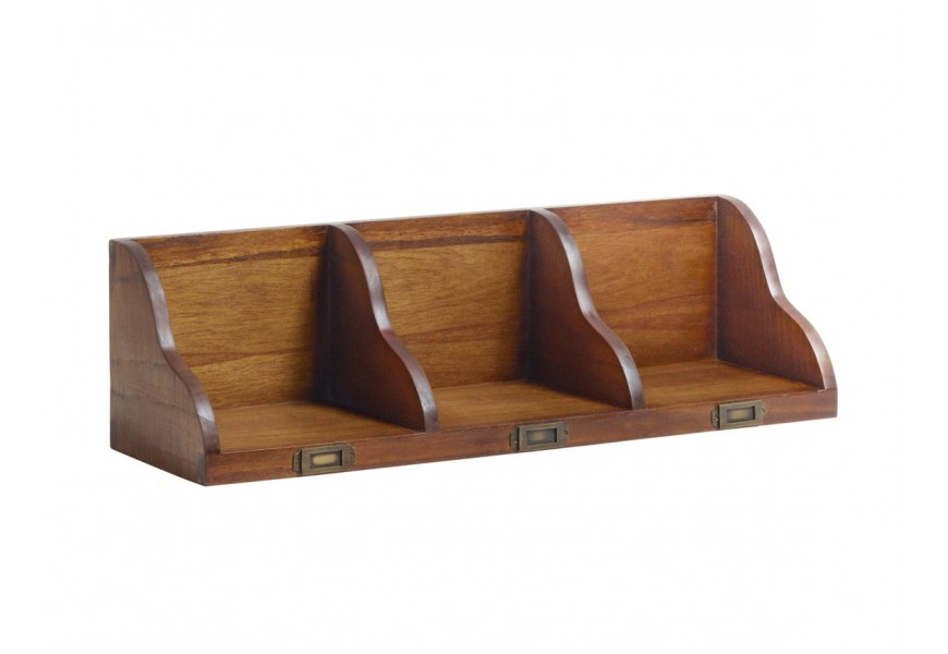 Masívna závesná polička Star hnedej farby s tromi priehradkami 70cm