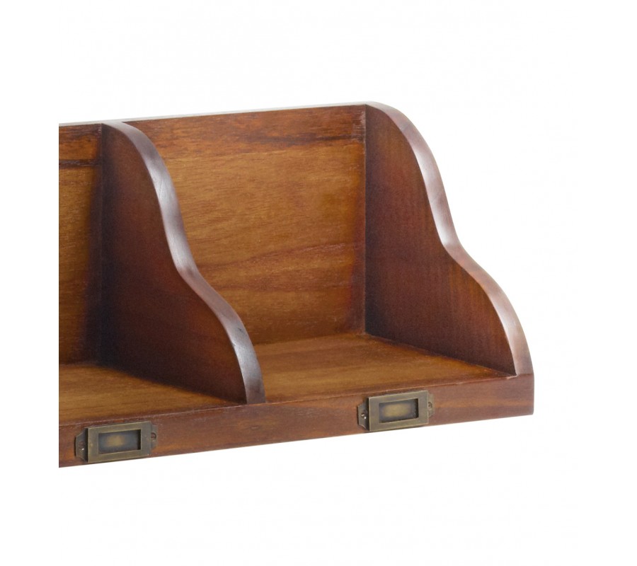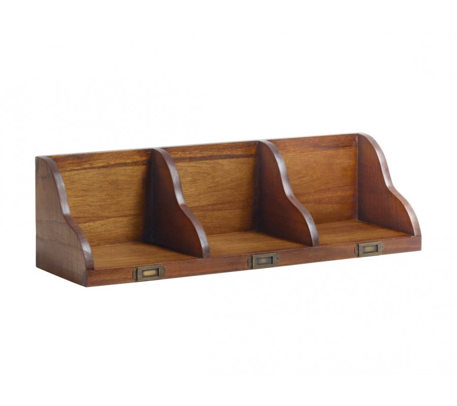 Elegantná polička z kolekcie nábytku Star je praktickým kúskom vhodným do rôznorodo ladených interiérov. Je vhodná na zavesenie najmä na steny v bielej alebo inej farbe naturálnych odtieňov. Je rozdelená na tri priehradky a tak je výborná na prehľadnú organizáciu. Polička je vyrobená z kvalitného masívneho dreva mindi a nesie sa v príjemnej hnedej farbe, ktorá zapadne naozaj kamkoľvek. Pre dokonalý dojem odporúčame kombináciu s ďalšími kúskami z našej kolekcie Star.