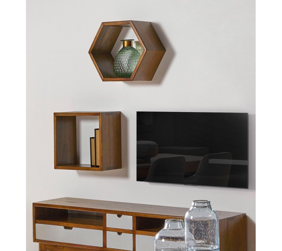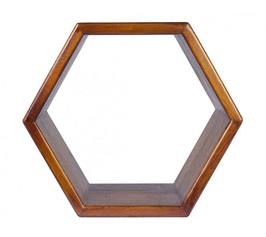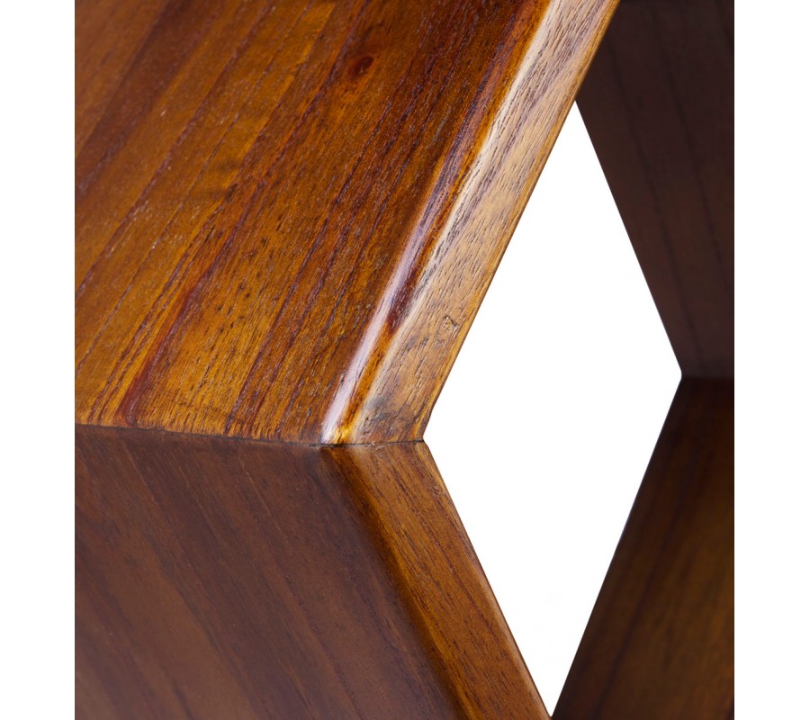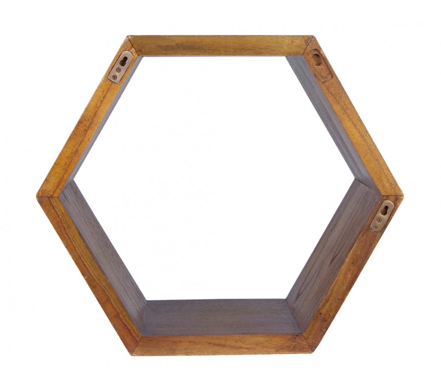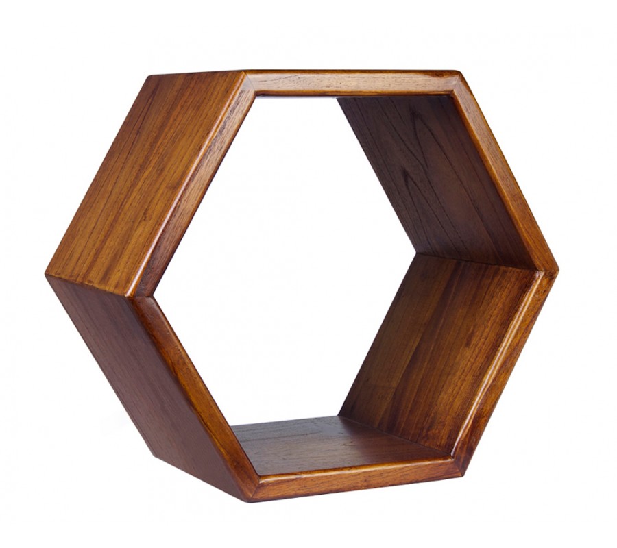 Luxusná hnedá šesťuholníková nástenná polica Norse z masívneho mindi dreva 40 cm