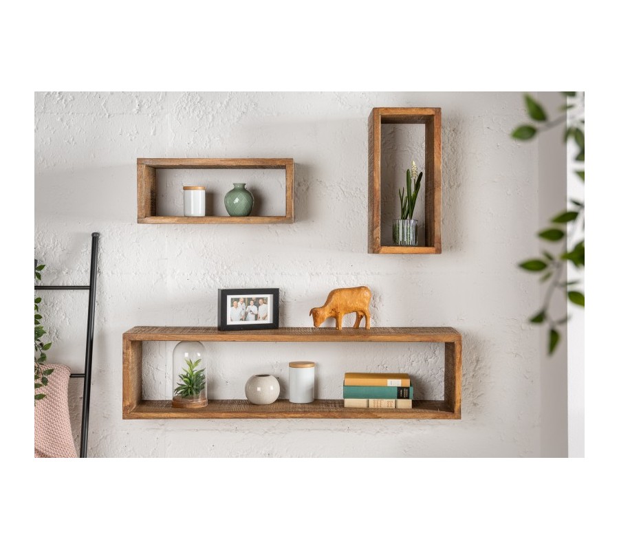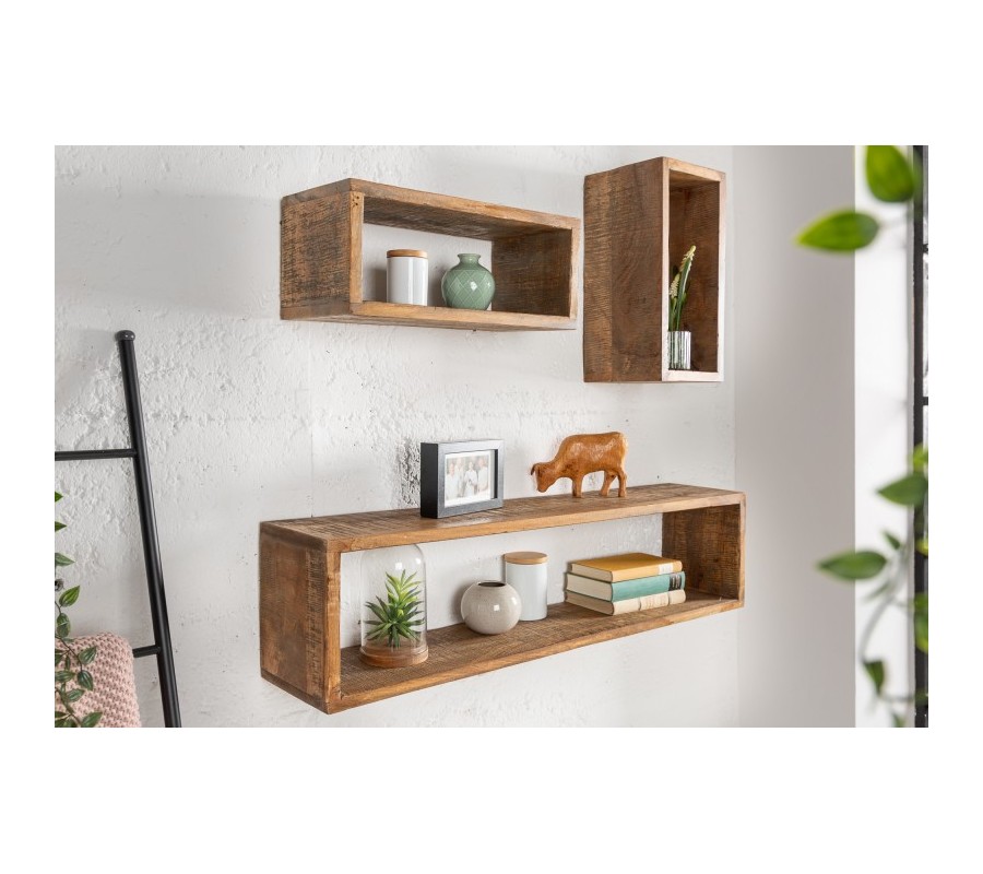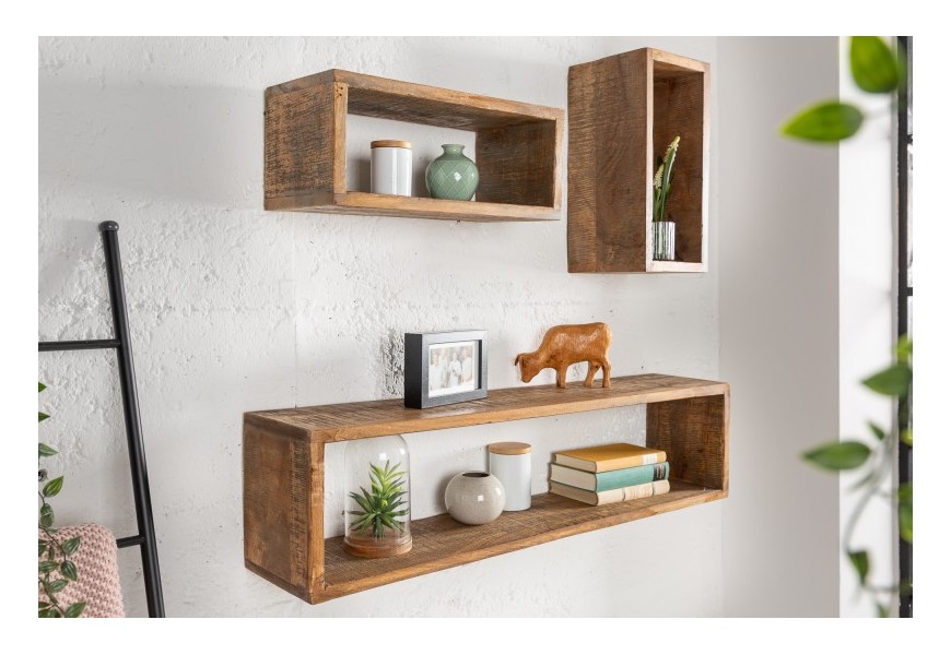 Štýlový set troch nástenných políc Hemingway výborne zapadne do industriálne, ale aj vidiecky ladených priestorov. Police sa nesú v prírodnej tmavohnedej farbe a sú vyrobené z kvalitného masívneho mangového dreva. Tento naturálny vzhľad je doplnený povrchovou úpravou dreva, ktorá necháva vyniknúť jeho prirodzenú kresbu. Police Hemingway výborne zapadnú do svetlejšie ladených obývačiek, pracovní či spální a dajú sa výborne doladiť ďalším masívnym nábytkom, prípadne doplnkami z kovu či živým rastlinvstvom.